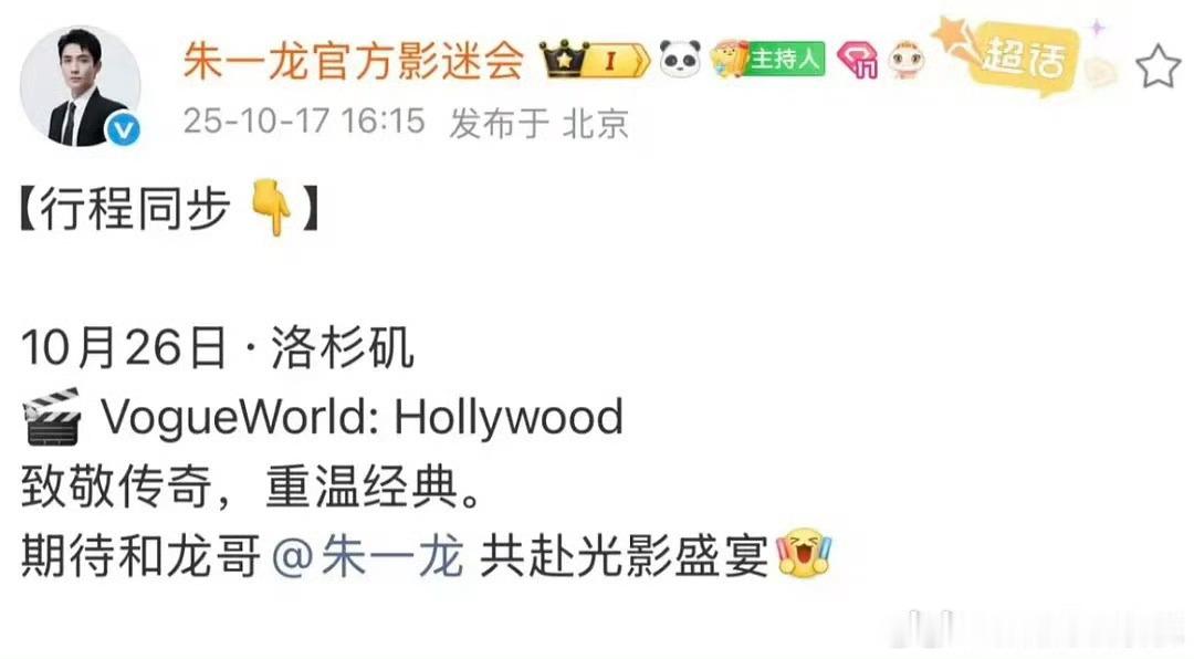 内娱已确认✅出席vogueworld的艺人🈶:刘亦菲、朱一龙