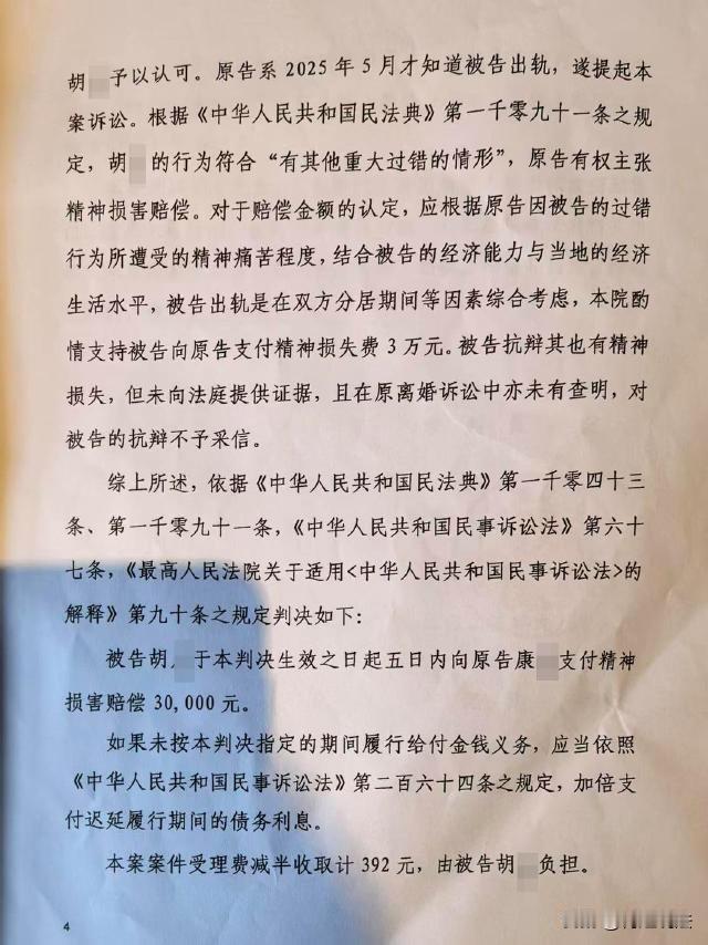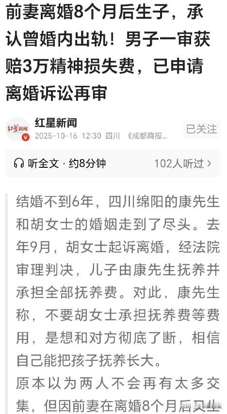 四川绵阳,康先生大学毕业后就外出打工,年龄大些后便回到绵阳做KTV的客户经理,经人介绍与同龄的胡女士交往后于年底登记结婚,办婚礼后夫妻二人租房住,同年11月儿子出生,此后夫妻创业失败,感情出了问题,不久就离了婚,离婚8个月后康先生发现前妻在婚内有出 轨的行为,起诉向胡女士索赔,案件历经一审、上诉、再审。 本信息来源于:、红星新闻 据红星新闻报道,2011年,康先生从大学毕业,怀揣着对未来的憧憬,他离开老家,前往外地打工。 在外漂泊的几年后,于2016年决定回到绵阳老家发展。 回到绵阳后,康先生在一家KTV当上了客户经理。为了多赚些钱,他白天找了个小时工的活,晚上再回KTV上班,日子虽然忙碌,但也算充实。 2018年7月,在朋友的介绍下,康先生认识了同龄的胡女士,两人一见如故,年底他们就登了记。 2019年2月14日,举办了婚礼,婚后便租了一间房子,开始了他们的婚姻生活。 婚后不久,胡女士便怀孕了,2019年11月,他们的儿子呱呱坠地。 看着可爱的儿子,夫妻俩也感到肩上的责任更重了。 为了给儿子创造更好的生活条件,他们决定一起创业,开了一家花店和一家窗帘店。 然而,由于缺乏经验,加上竞争激烈,花店和窗帘店的生意一直不好。 尽管他们付出了很多努力,但最终还是没能扭转局面,到2022年,两家店都倒闭了。 生意的失败,让他们的生活陷入了困境。 而生活的琐事,更是让他们的感情出现了裂痕,两人开始频繁地争吵。 2023年12月,胡女士起诉离婚,她在起诉书中称,康先生婚后脾气不好,动辄就对她拳脚相加。 但调查发现,婚内胡女士曾两次报了警,可视频显示两人只是有拉扯行为,并没有胡女士所说的暴力情况,于是驳回了她的离婚诉求。 此后,两人便开始了分居生活。 2024年9月,胡女士再次起诉离婚。 9月24日,判决两人离婚,儿子由康先生抚养,康先生念及旧情,没有要求胡女士支付抚养费,还给了她1.9万元的车辆补偿款。 本以为这场婚姻的闹剧就此结束,可没想到,离婚8个月后,康先生却得知了一个令他无法原谅的消息,胡女士怀孕了,而且马上就要生产了。 康先生一算日子,发现胡女士是在没离婚的时候就已经怀孕了。 康先生越想越气,他觉得胡女士背叛了他们的婚姻,于是他提起诉讼,向胡女士索赔10万元的损失费。 审理时,胡女士也承认了自己出轨的事实,但她称当时两人已经分居了。 经审理,一审判决胡女士赔偿康先生3万元的精神损失费。 胡女士对这个判决结果不服,她提起了上诉。 而康先生也不甘心,他申请了再审,要求胡女士付清儿子从5岁到18岁的抚养费共计224800元,以及学费和医疗费10万元,还要返还那1.9万元的车辆补偿款。 康先生觉得自己在这场婚姻中受到了伤害,他想要得到应有的赔偿。 而胡女士则认为自己也有自己的苦衷,她不想承担过多的责任。 那么,以法律的角度该如何看这件事呢? 1,胡女士在婚内出轨并怀孕的行为,该如何定性呢? 胡女士在婚姻存续关系期间与他人发生不正当关系并导致怀孕,这明显违背了夫妻间的忠诚义务。 根据《民法典》第一千零四十三条规定,夫妻应当互相忠实,互相尊重,互相关爱。 胡女士的行为严重破坏了夫妻间的信任关系,虽然此行为本身一般不直接构成刑事犯罪,但从民事角度,这属于过错行为。 康先生作为无过错方,有权要求过错方胡女士进行损害赔偿,这也符合《民法典》第一千零九十一条规定,即有重婚或者与他人同居等重大过错导致离婚的,无过错方有权请求损害赔偿。 一审判决胡女士赔偿康先生3万元精神损失费,也是很合理的,也体现了对无过错方权益的保护。 2接着,康先生要求胡女士付清儿子从5岁到18岁的抚养费共计224800元以及学费和医疗费10万元,是否合理呢? 《民法典》第一千零八十五条规定,离婚后,子女由一方直接抚养的,另一方应当负担部分或者全部抚养费。负担费用的多少和期限的长短,由双方协议;协议不成的,由人民 法 院 判决。 虽然康先生在离婚时未要求胡女士支付抚养费,但这并不意味着胡女士就完全免除了抚养义务。 根据实际情况,可以支持康先生要求支付部分抚养费的请求,是考虑到子女的实际需求以及胡女士的负担能力。 毕竟子女是父母双方的,都有抚养的义务,不能因为离婚就完全推脱责任。 3,康先生要求胡女士返还那1.9万元的车辆补偿款,是否合理呢? 这1.9万元是康先生在离婚时基于念及旧情等因素给予胡女士的车辆补偿款。 在法律上,如果没有证据表明该补偿款存在显失公平等法定可撤销情形,那么胡女士无需返还。 不支持康先生返还车辆补偿款的请求,因为这属于双方在离婚时自愿达成的财产分配协议,只要不存在欺诈、胁迫、显失公平等法定情形,就应当受到法律保护。 您对这件事有什么看法呢?欢迎在评论区说说您的看法。