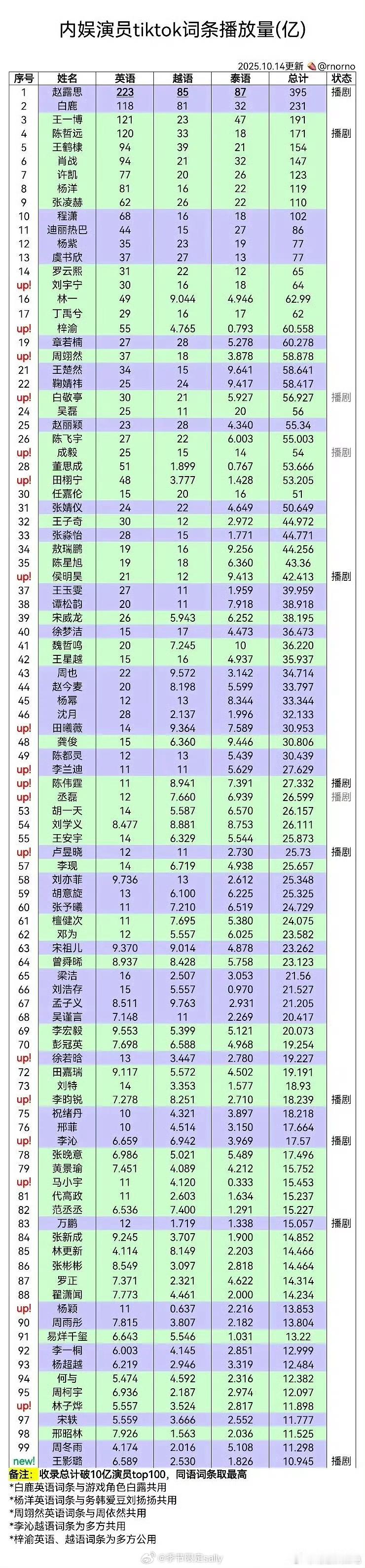 内娱艺人洋抖数据🈶