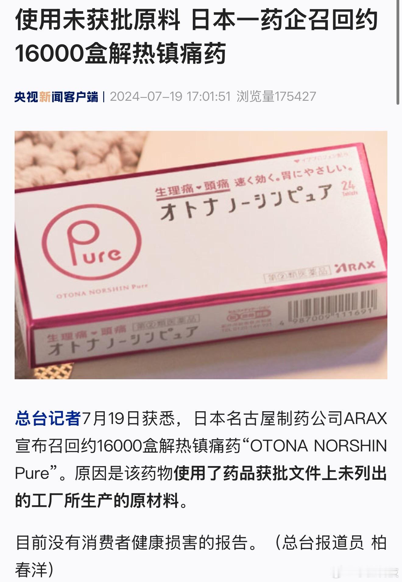 日本药 下料狠从来没见国产药出问题被全面召回的,确实是国内的药安全!不过话说回来日本人吃汉方药似乎也比较多,传统医药(包括中医药和印度阿育吠陀医学)是古老文明一代代积累出来的,是现代医学可以挖掘的宝库。事实摆在眼前,青蒿素、麻黄、姜黄素、蛇药中提取的利血平、黄连素,这些是已经被提取出来的,已经证明了传统医学中就是存在大量有效成份的。但是未被研究完全的中药和疗法是更多的,这就是生物医学的宝库,有大量的潜能。当然,已被证明有害的药材和疗法应被去除。