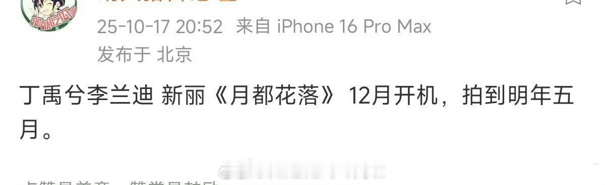 🍉新丽《月落花都》丁禹兮李兰迪12月开机,兜兜转转还是在磕小丁啊