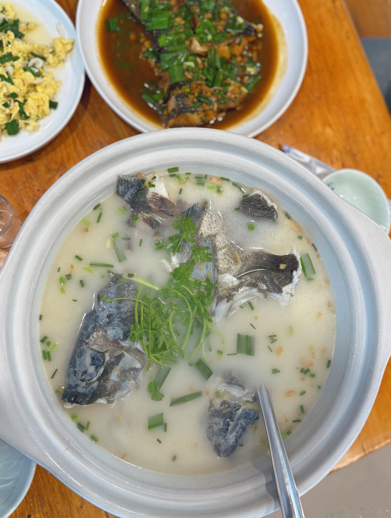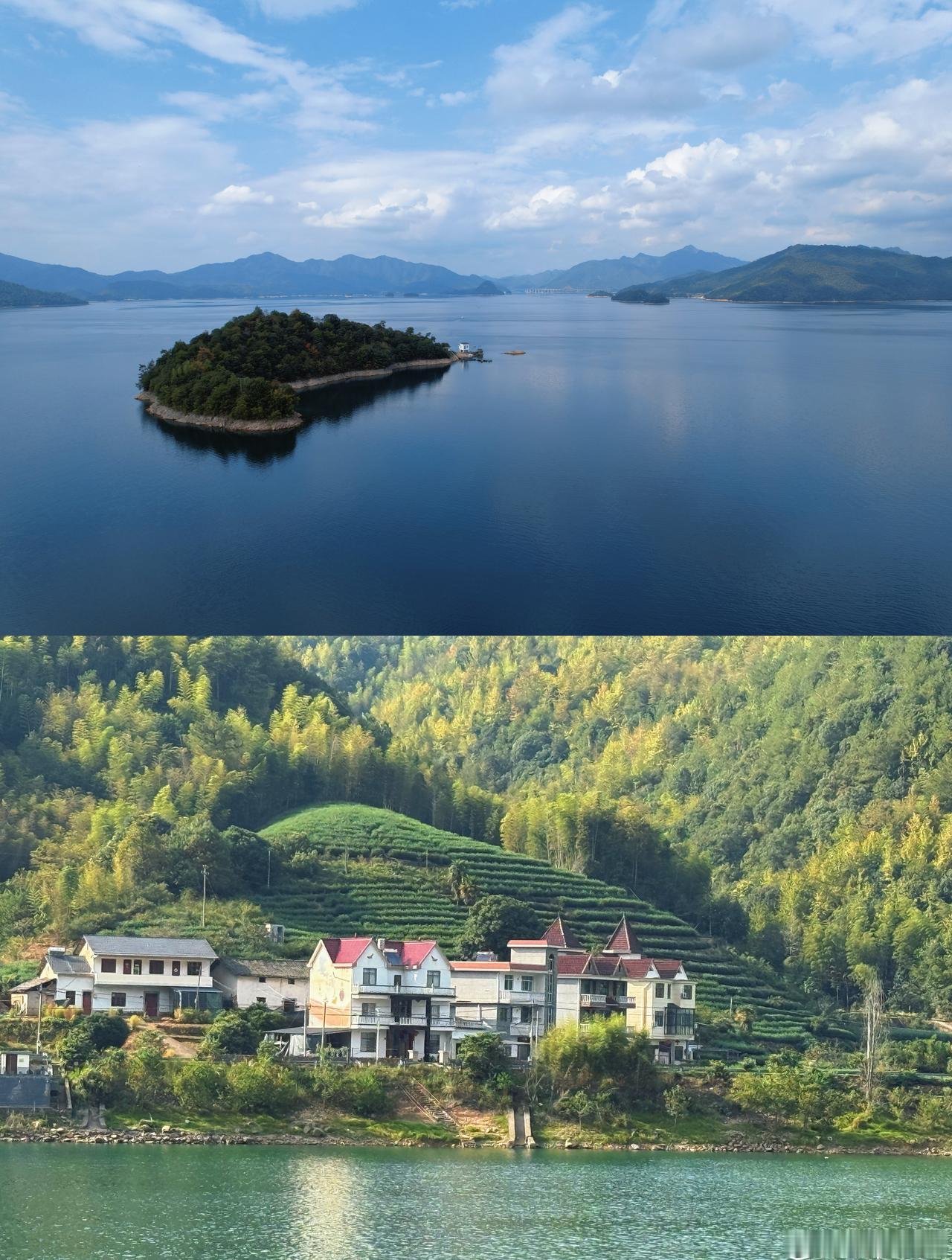D6. 水光潋滟千岛湖环湖游~ 今天我们沿白小线环千岛湖半圈游,开到千岛湖镇吃鱼头~领略了多日山色空濛的江南,今天终于水光潋滟晴方好啦沿途我们经过了新安江水电站、“有点甜”的那个水的搬运工的生产基地、茶山梯田,还和饮用水采样点工人、千岛湖垂钓者聊了几句,开到千岛湖镇吃上了胖头鱼~ 话说千岛湖的鱼头,千店一律地只有剁椒鱼头和浓汤鱼头两个选项,因为popo不能吃辣,只好选了浓汤鱼头,众位北方人又嫌太清淡,我要了一些剁椒酱给自己硬凹成了剁椒鱼头其实我觉得店家何不开发一款酱烧鱼头,配切成角的烙饼,肯定广受北方游客的欢迎 我也不知道怎么就脑子抽风了,在旅行刚开始时买了两盆尤佳利树,这个植物不怕暴晒不怕雨淋,唯一怕的就是通风不够好,每到一晚住宿我都要给它们安排放风,真的是比带着汪星人旅行还麻烦,今天更是为了它们升级了带阳台的湖景房