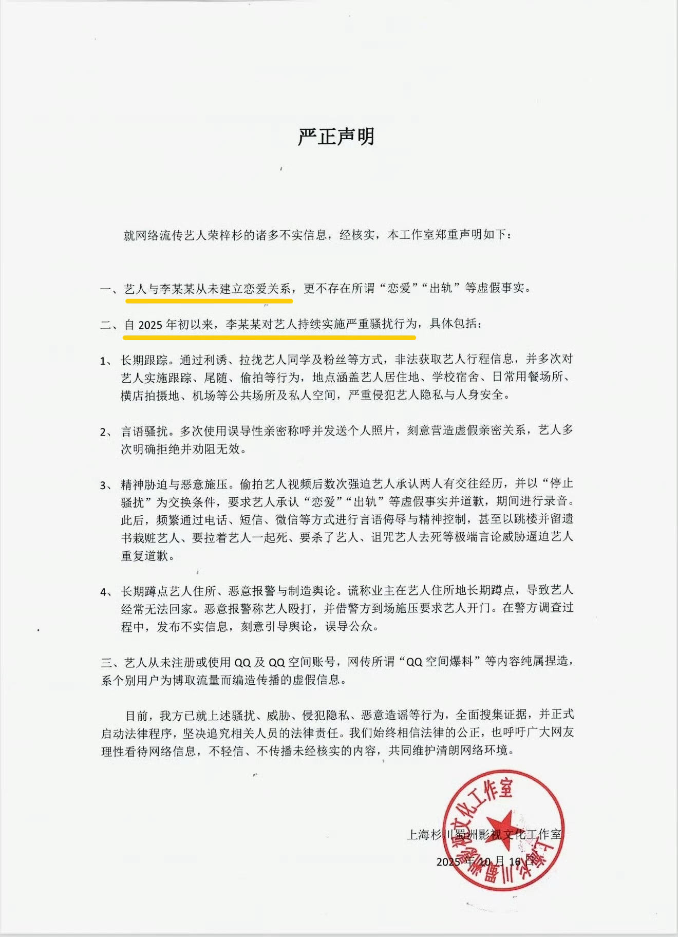警方通报荣梓杉李禹熹纠纷 撒谎了啊!警方定性荣梓杉和李禹熹事件是情感纠纷,但荣梓杉团队发虚假声明说两人从未恋爱,还把女方打成极端私生!