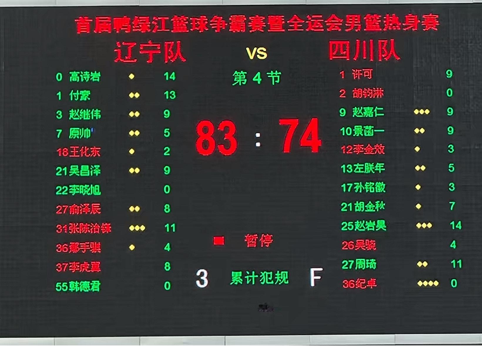 高诗岩得到14分,付豪13分,张陈11分,继伟9分,大C 9分,大牙8分,虎子8分,原帅5分,手帝4分,王化东2分。