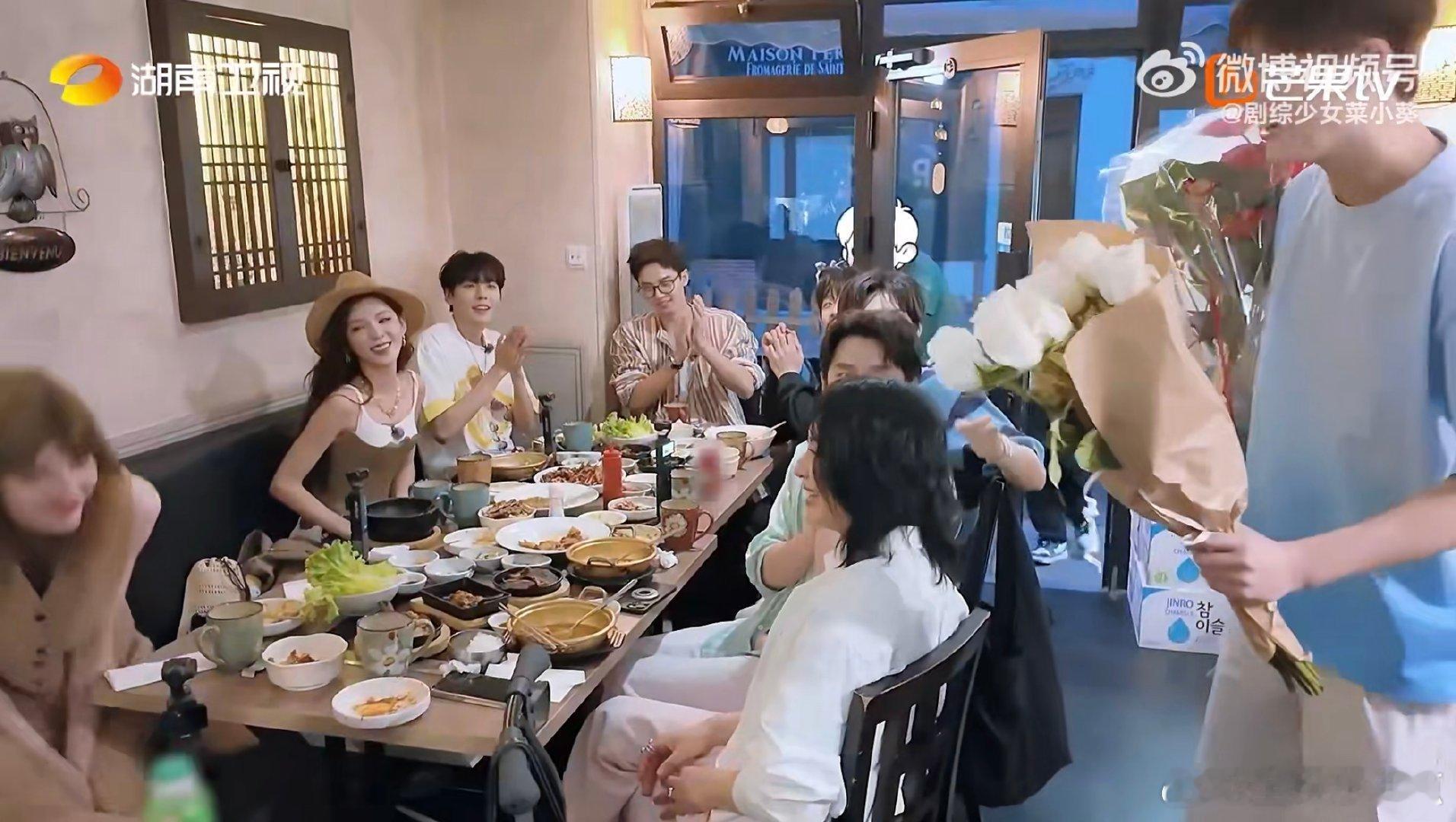 董力来接阿诺下班 阿诺特邀店员体验圆满落幕,合伙人出游聚餐的尾声,董力带着鲜花突然出现,这份惊喜直接让阿诺害羞到笑眼弯弯~