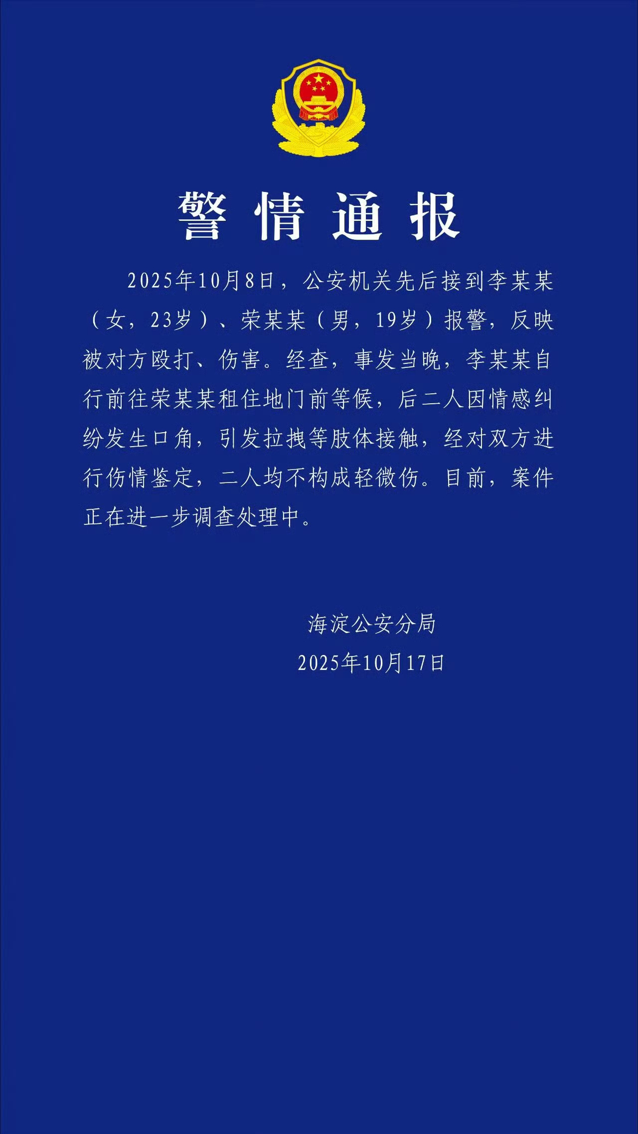 警方通报荣梓杉李禹熹纠纷这是警方帮忙官宣恋情啊!开始工作室还否认!现在实锤了,不过男的出轨还打人,也算是遇人不淑吧! ​​​