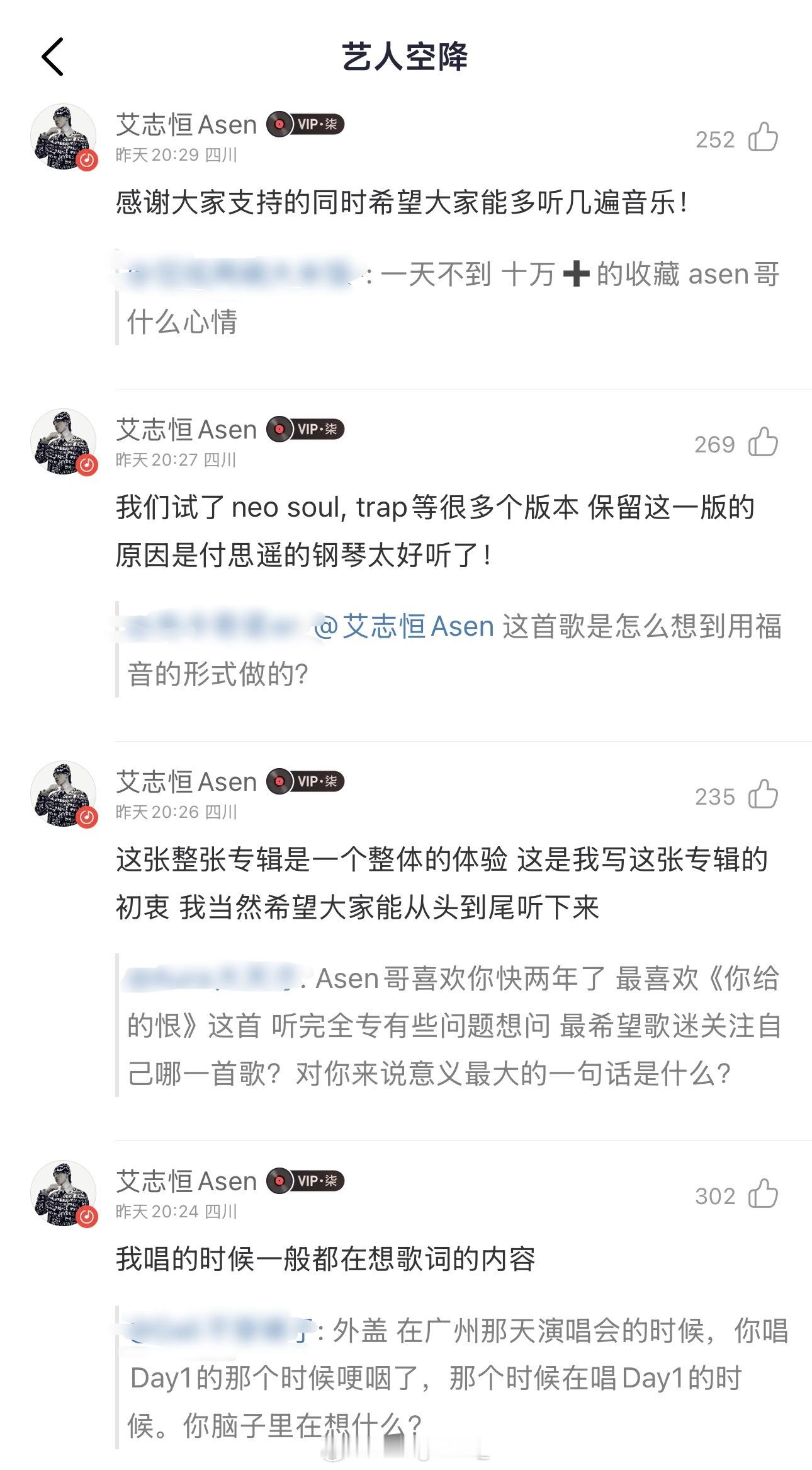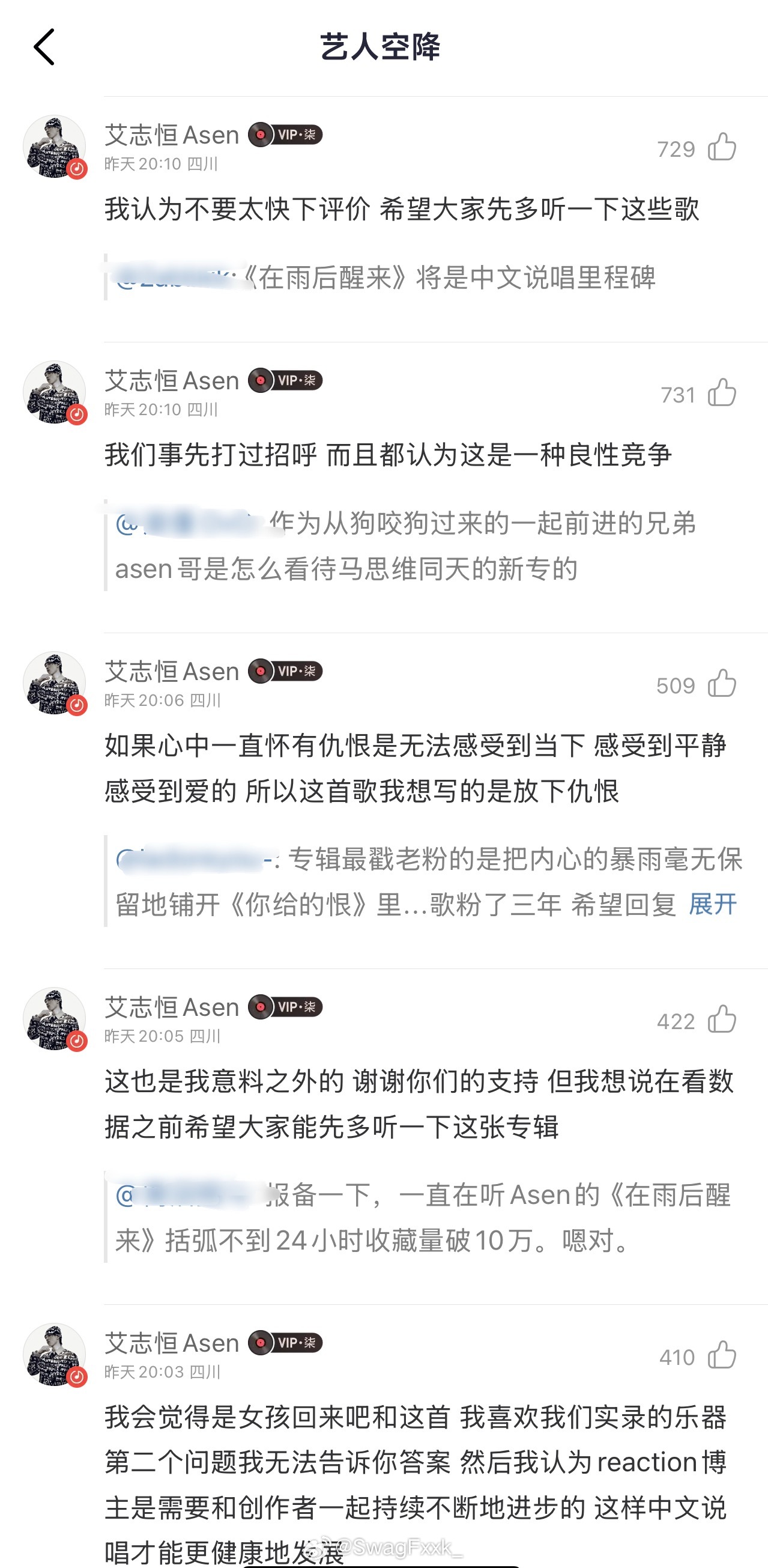 Asen在新专辑评论走心回复网友!同时谈到新专辑已经10W+收藏: