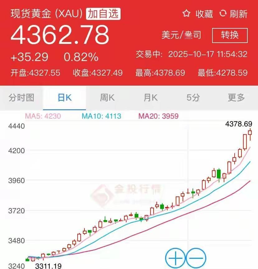 黄金暴涨的真相:95%的央行正在密谋一场“货币革命”:现货黄金周五一度逼近4380美元/盎司创历史新高,这场2024年启动的牛市是全球资本对美国政府停摆、中美科技脱钩、美联储降息预期的回应,也是黄金避险属性在货币信用动摇时代的回归。中国央行连续11个月增持至7406万盎司,95%受访央行计划未来12个月继续增持,黄金ETF持仓创三年新高,中印实物需求托底。需警惕政策转向、央行抛售、技术替代风险,及美联储降息不及预期或中美谈判进展引发的短期回调。