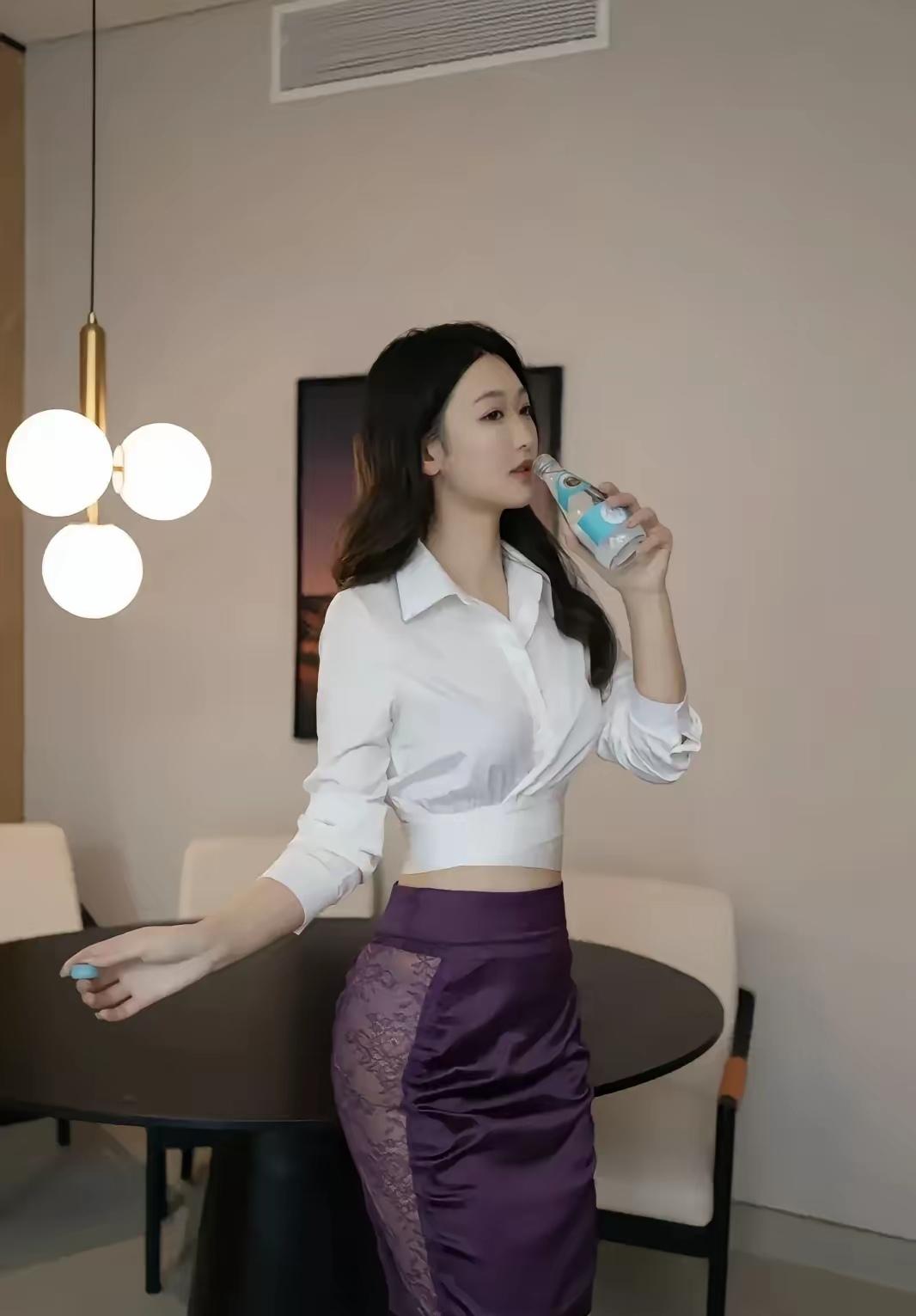 唐安琪是一位兼具性感与优雅气质的模特,擅长通过简约单品打造出充满女人味的造型,其穿搭常以“职场轻熟风”为核心,兼具精致感与实用 选择一件白色收腰短款衬衫,通过交叉收腰设计勾勒出纤细腰线,露出一小段腹部肌肤,打破传统白衬衫的正式感,增添轻性感;面料挺括不易皱,兼顾职场通勤的干练需求。 搭配一条紫色缎面蕾丝拼接包臀半裙,缎面材质自带高级光泽,侧缝的蕾丝透视设计若隐若现,弱化了包臀裙的拘谨感,增添柔媚气质;长度控制在大腿中部,结合裸色丝袜,进一步延伸腿部线条。 一双白色尖头细跟高跟鞋是点睛之笔,鞋跟纤细但高度适中(约7cm),既提升气场又保证行走舒适度;白色与上衣呼应,视觉上强化“下装失踪”效果,让双腿更显修长。 裸色丝袜与肌肤色调融合,柔化腿部轮廓的同时,为整体造型注入“隐秘性感”;长发微卷披肩,与知性的衬衫、妩媚的半裙形成风格平衡。长腿女神唐安琪 职场穿搭 紫色包臀裙