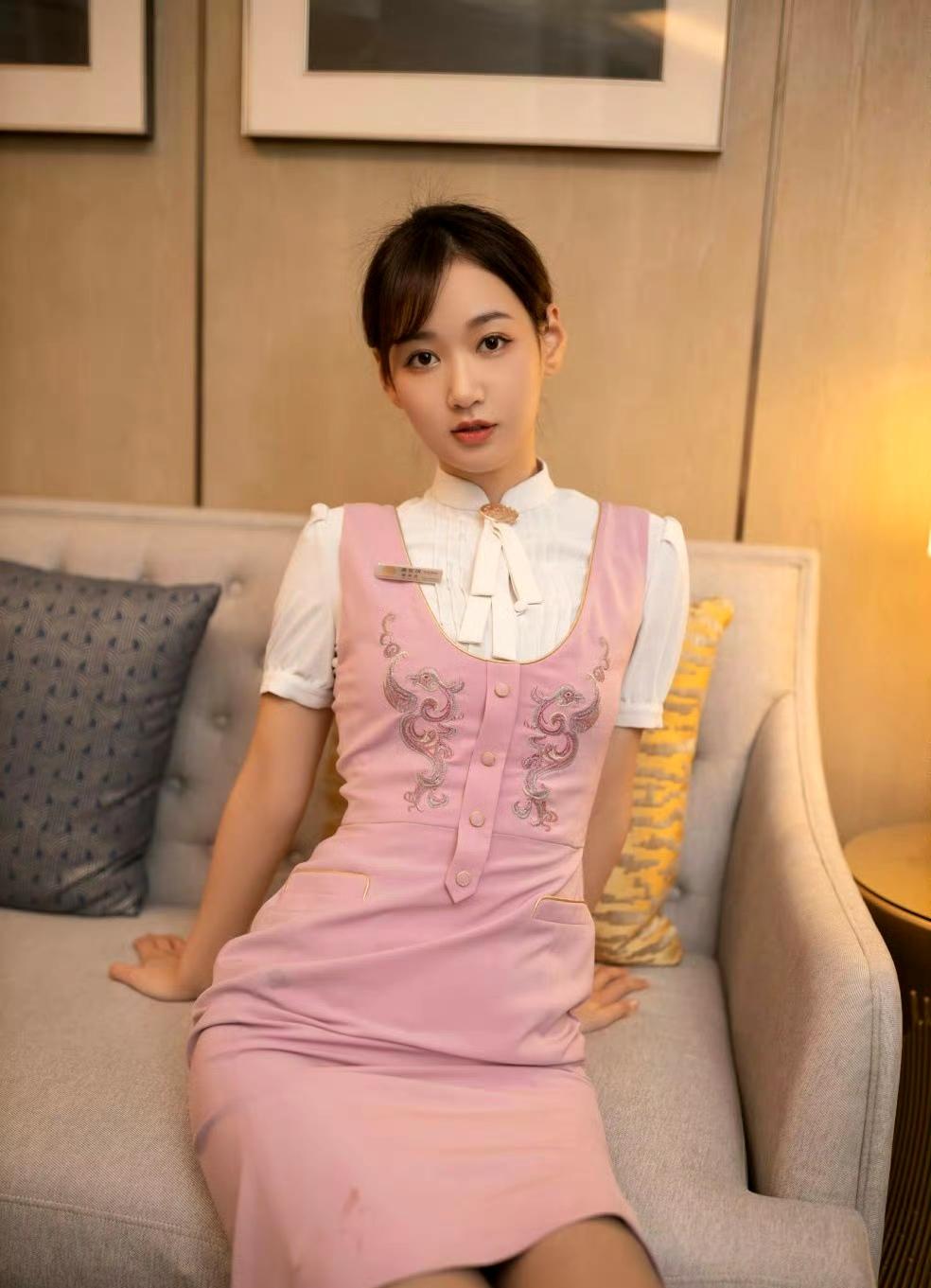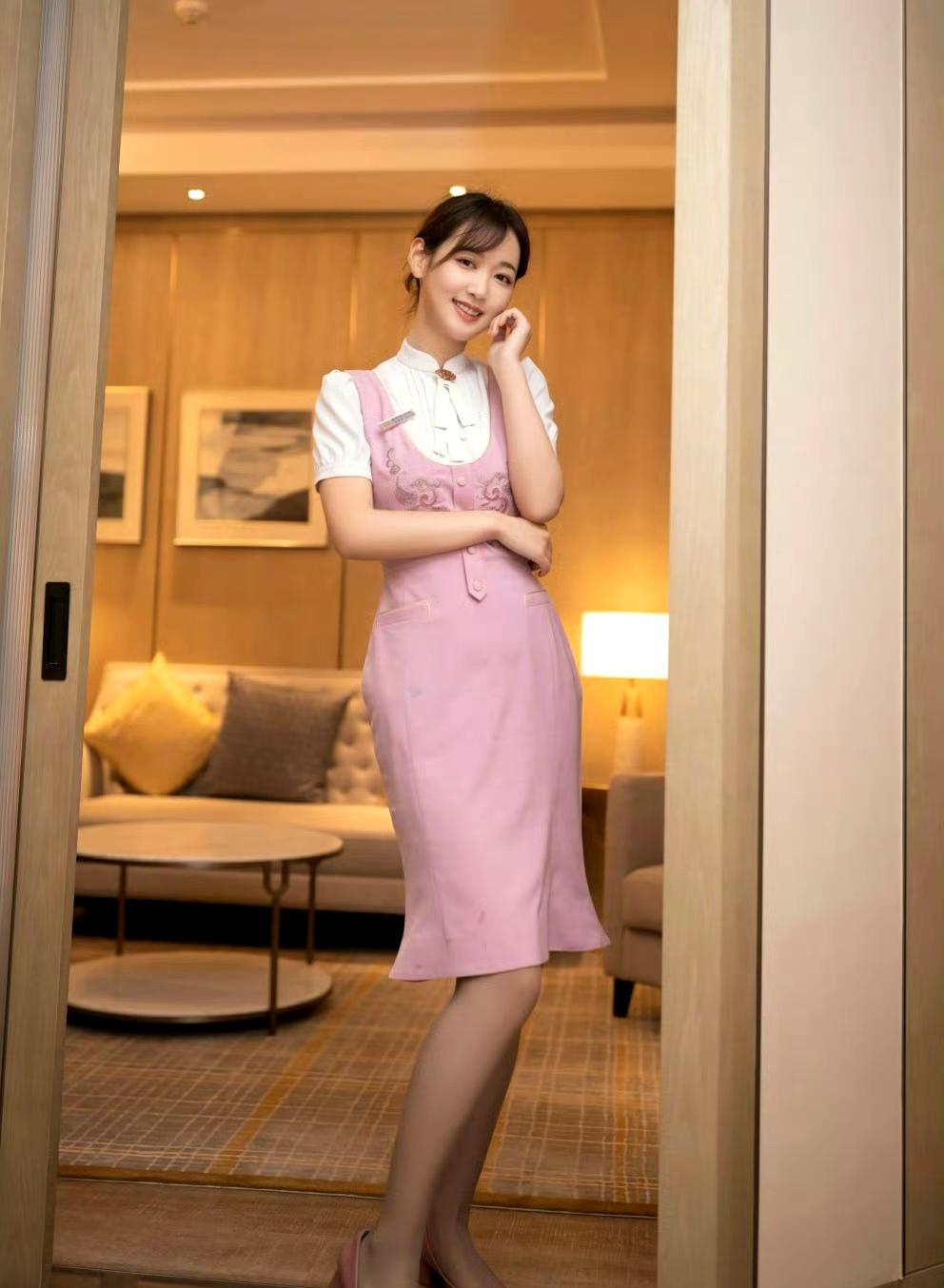 唐安琪这套穿搭将职场干练与柔美风格巧妙融合。白色立领衬衣,泡泡袖设计增添几分俏皮,领口的蝴蝶结元素精致优雅。外搭的粉色短裙,刺绣花纹尽显细腻质感,纽扣排列与剪裁勾勒出利落身形。肉色丝袜自然修饰腿部线条,搭配同色系粉色短跟高跟鞋,在提升气质的同时保证了舒适感,整体造型既适合服务类职场场景,又通过色彩与细节的搭配,展现出清新甜美的女性魅力。欣赏人间尤物的穿搭是怎样一种体验职场穿搭御姐 高跟丝袜 唐安琪职业女性怎么穿出温柔气质? 职场温柔风穿搭 职场女高管穿搭