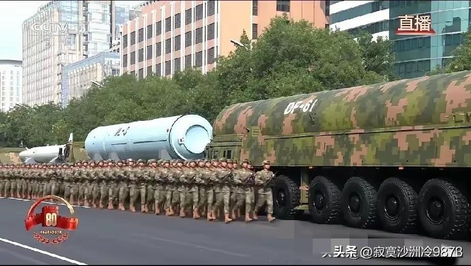 首次公开亮相的东风-61洲际导弹,到底有多强? 在核导弹方队驶过天安门时,解说员只报出了惊雷1号和东风31。对东风-61却只字未提,可见该导弹的保密性有多强! 接照命名惯例,东风系列导弹经31.41之后,应该是神秘的51。然而51未见61却横空出世,让人万分激动!! 东风61,才是共和国和平的压舱石!