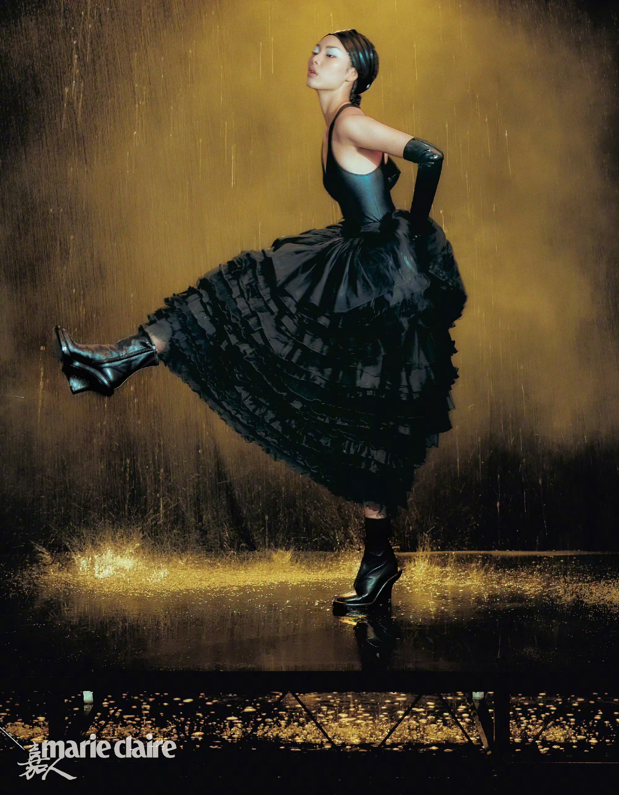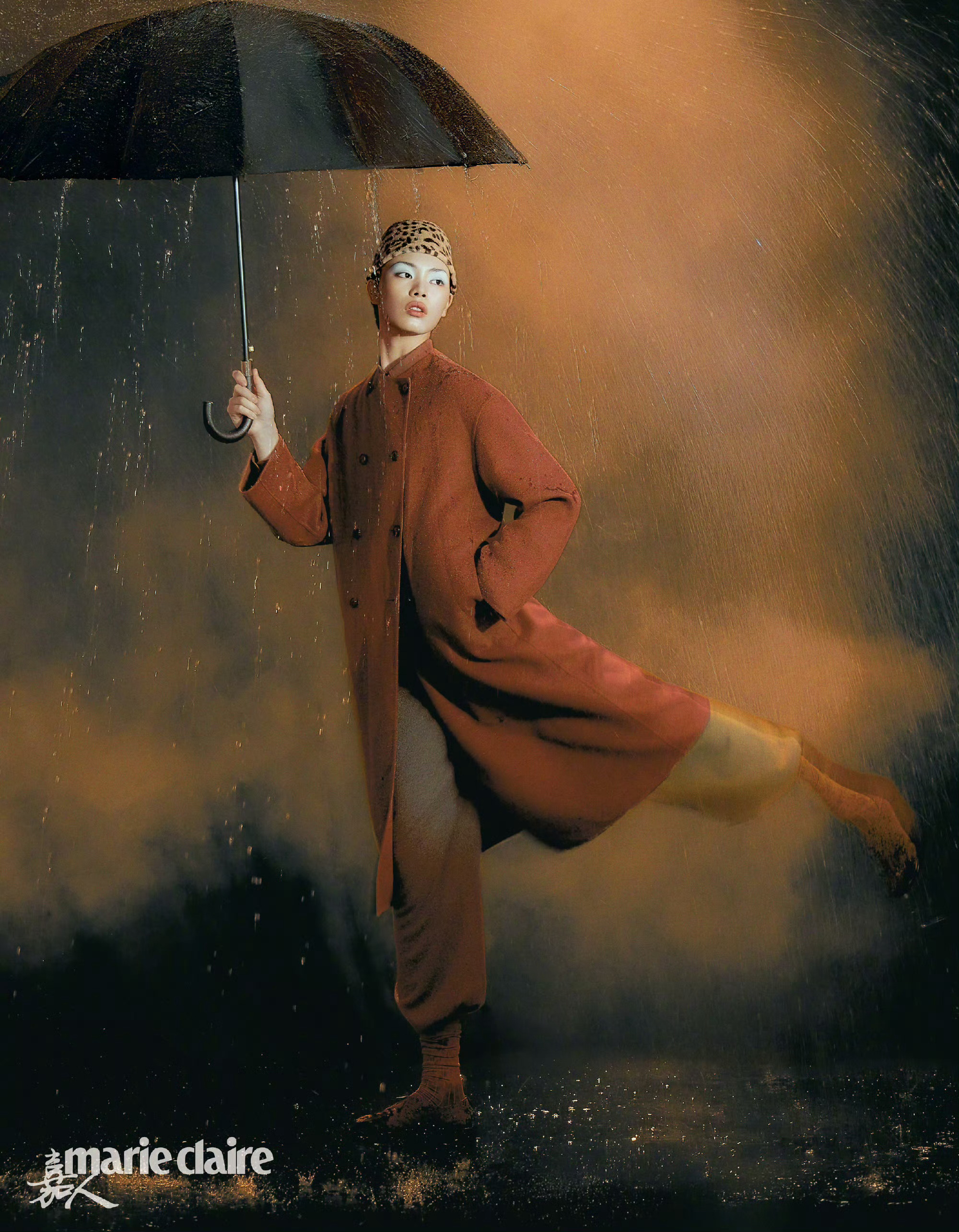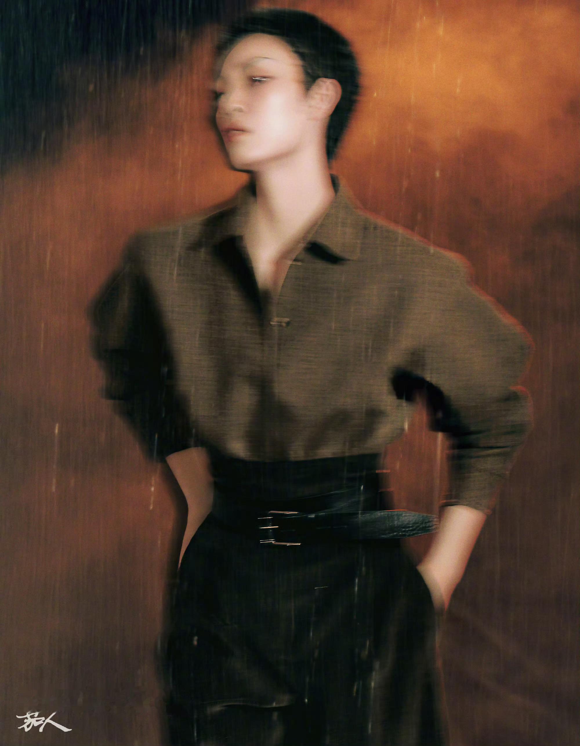 以内在的恒定面对万变,衣角划破雨雾,水珠坠入褶皱,微光泛起于飘动之间——于从容姿态中,成就此刻的注解。