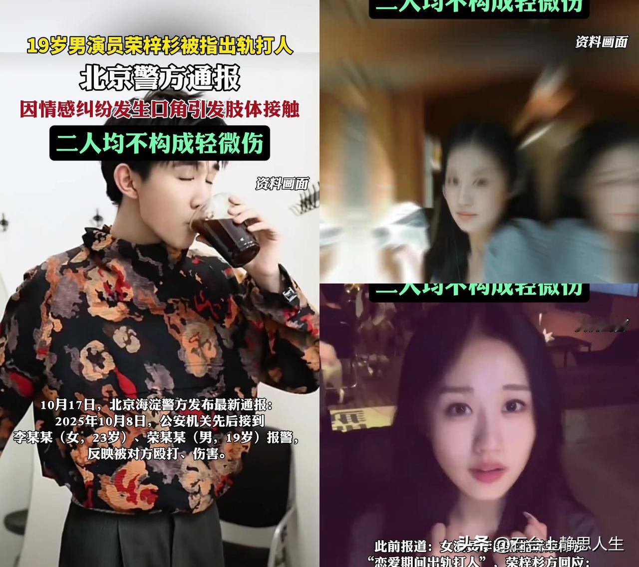 《隐秘的角落》里的朱朝阳,居然成了现实版情感谜局? 19岁荣梓杉被锤“出轨打人”,警方说“情感纠纷,俩人情急拉拽,都没伤”。 可他自己说“没建立恋爱关系”,大家讨论中却扒出“开房AA、用女生照片当头像”,这操作谁能理清? 有人骂:“没恋爱但开房,这叫不敢负责的模糊边界!” 也有人替他喊冤:“女方跟踪偷拍,男方是被缠上的!” 还有人吐槽:“花少里的呆萌小奶狗,怎么变成阴鸷脸?” 我真是看懵了!恋爱关系是要签合同才算吗?开房AA、用人家头像,这要是不算在一起,当代年轻人的关系也太迷了吧? 连大家留言里都在说“梓字不好,上一个带梓的也出轨”,塌房的从来不是名字,没守住的底线才是关键啊! 大家觉得没正式确立恋爱关系,但有亲密接触算什么?是暧昧过界还是各取所需?