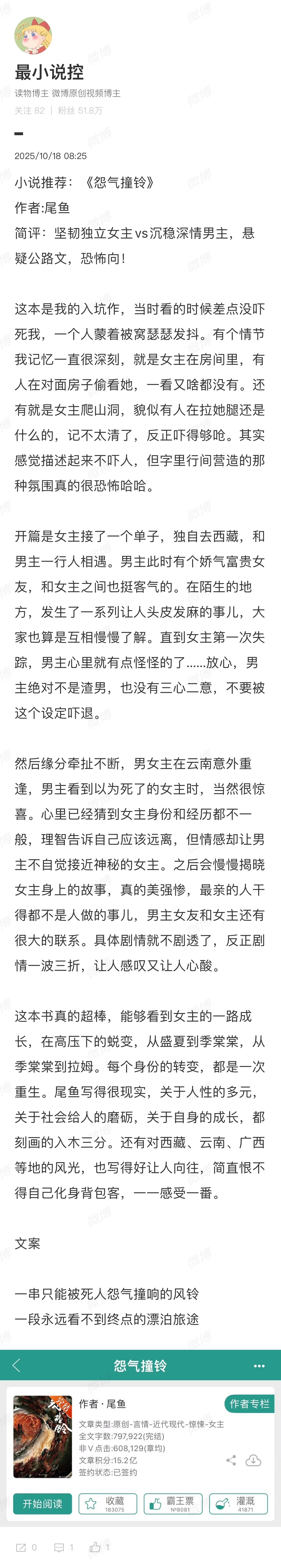 虽然那时候文笔稚嫩,但是我觉得是尾鱼最好看的一本——怨气撞铃