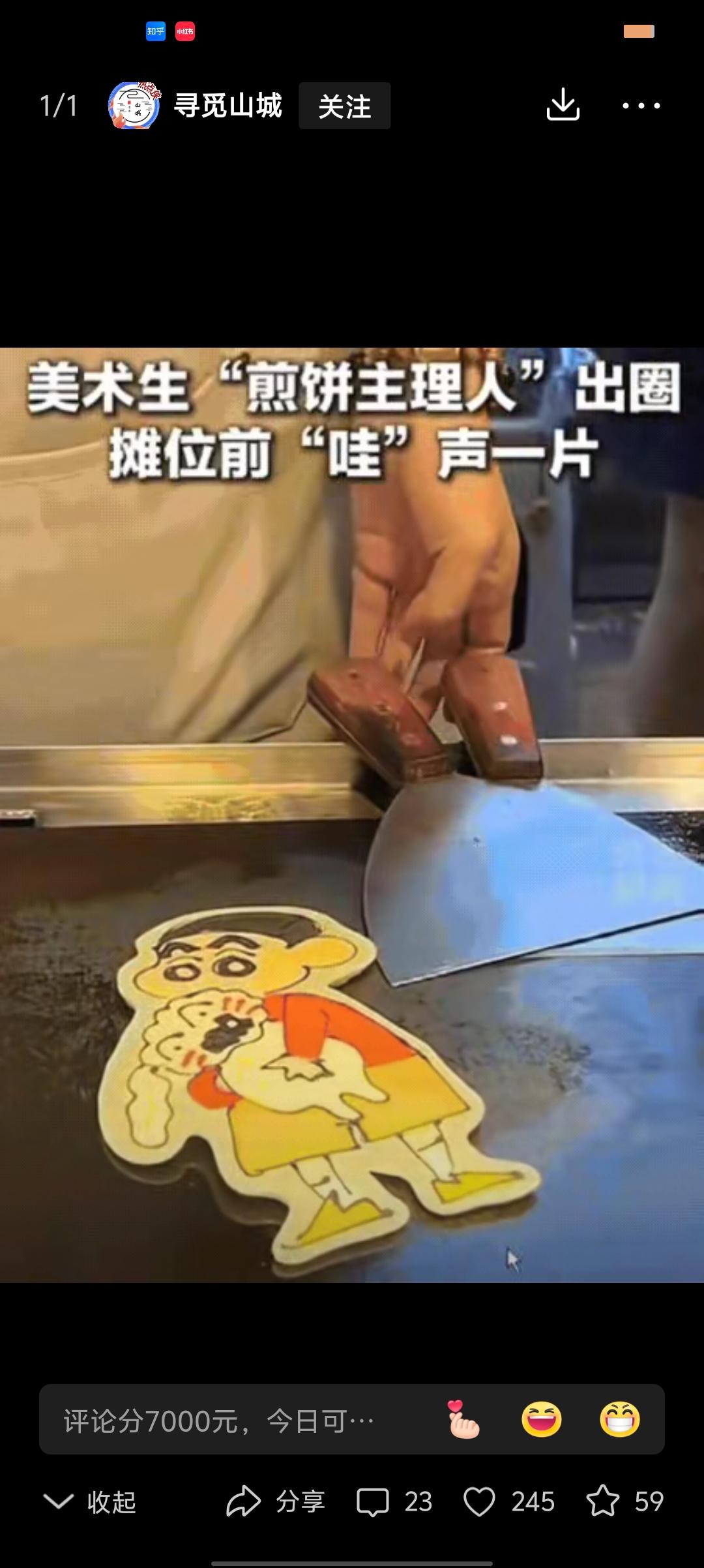 没想到上央视新闻了!四川,95后女生为了赚外快,竟然到路边卖煎饼,利用自己绘画优势,定制“有温度”的煎饼,做出各种动漫人物,比如喜羊羊,蜡笔小新等等,日均卖五六十个,变身“煎饼主理人,“画饼充饥”在此刻具象化。 有网友说:当食品和艺术结合,效果立马不同了! 这姑娘脑洞大开,把普通的煎饼做成了各种卡通形象,而且可以定制,这创意绝不简单,堪称全球首创! 建议姑娘抓紧去注册个专利,绝对一本万利!因为姑娘的创意已上了央视新闻,生意也很好,接下来有绘画功底的老板肯定会跟风,自已不注册专利,让别人抢注了,那就太可惜了! 为这个聪明的姑娘点赞!愿她的生意兴隆! 马斯克说,所谓创新就是组合,把两个特色项目有效组合起来就是成功的创新。“手绘煎饼”走红这一事实就是对马斯克理论的最好证明。 这女生也太会了吧!把美术生的特长用到卖煎饼上,蜡笔小新、喜羊羊画得超可爱,难怪能上央视,太会琢磨了! 古语云:只要功夫深铁杵磨成针!只要肯努力条条大路通北京! 大家怎么看呢?