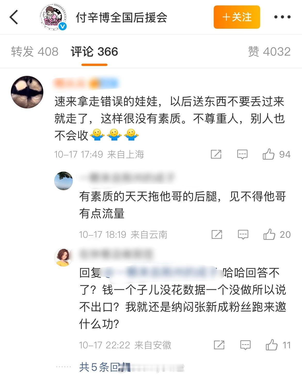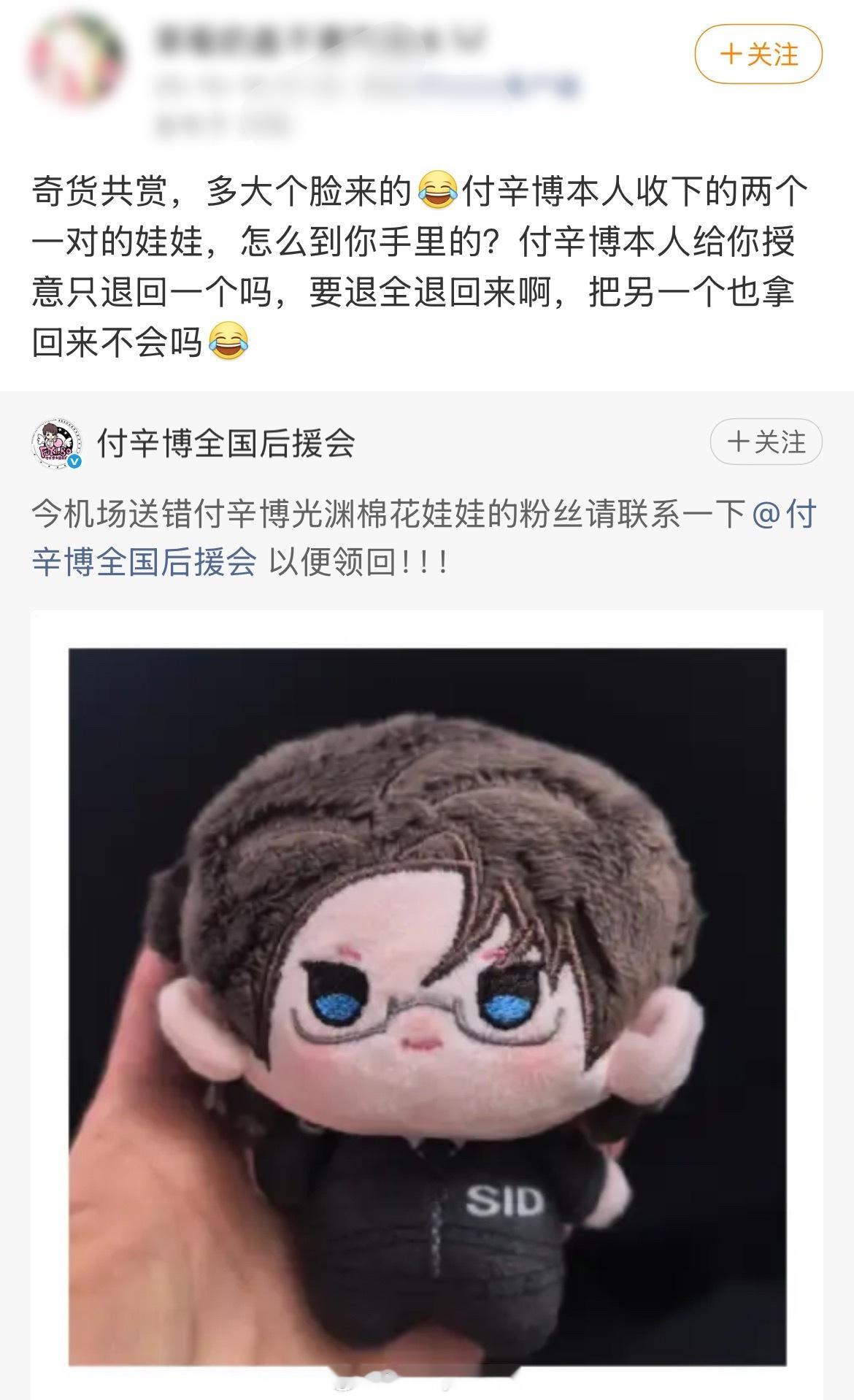 笑不行了,CP粉在机场送了付辛博一对棉花娃娃,一个代表他,一个代表张新成,付辛博两个娃娃都收了。现在付辛博后援会让送娃娃的粉丝把张新成那款娃娃领回去,已知当事人收了两个,付辛博留下了自己的那个,张新成的那款却要退回去……这算是既要又要还是亲手拆CP?