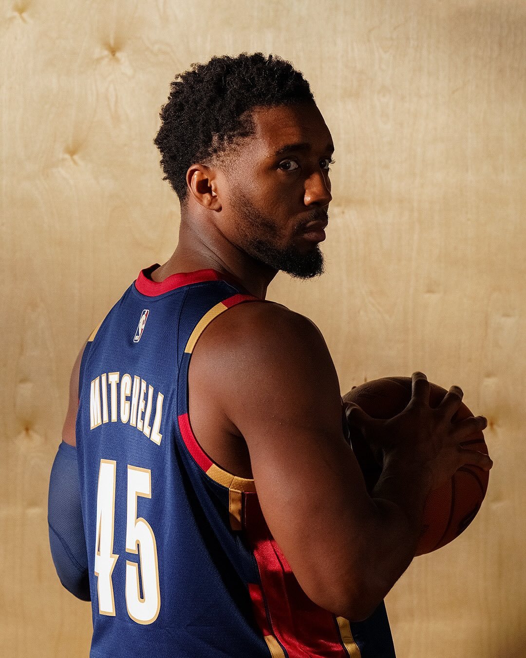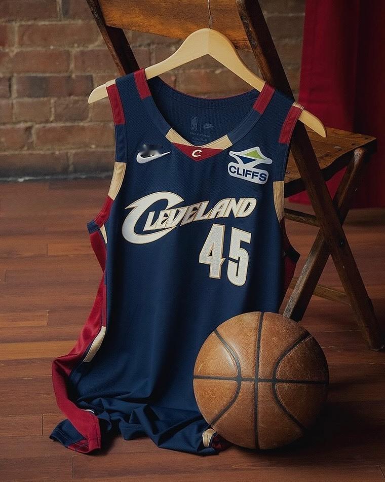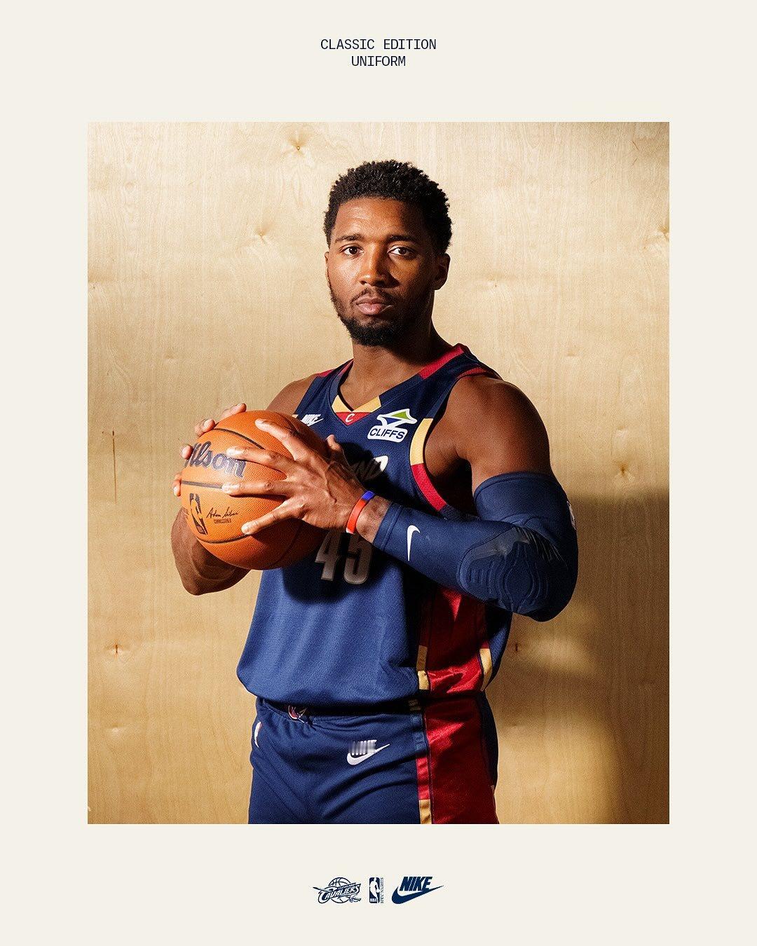 骑士25-26赛季复古版球衣,以及米切尔加兰朗佐鲍尔拍摄的定妆照克利夫兰骑士