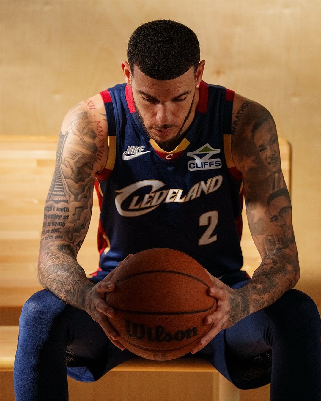 骑士25-26赛季复古版球衣,以及米切尔 加兰 朗佐鲍尔拍摄的定妆照克利夫兰骑士