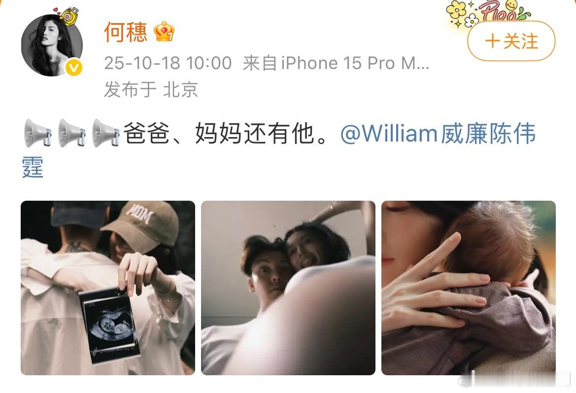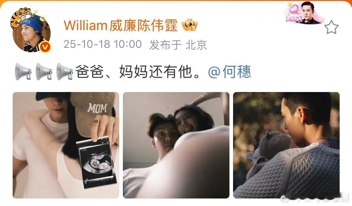 今日,演员陈伟霆官宣与模特何穗结婚生子。两人分别在社交平台晒出照片并艾特对方。