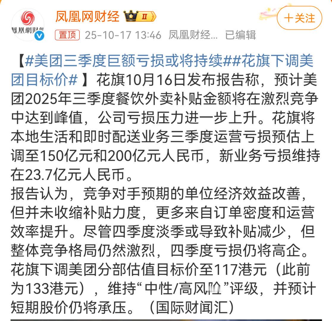 大家平时用美团用的多吗?怎么会这样[傻眼] 美团三季度巨额亏损或将持续