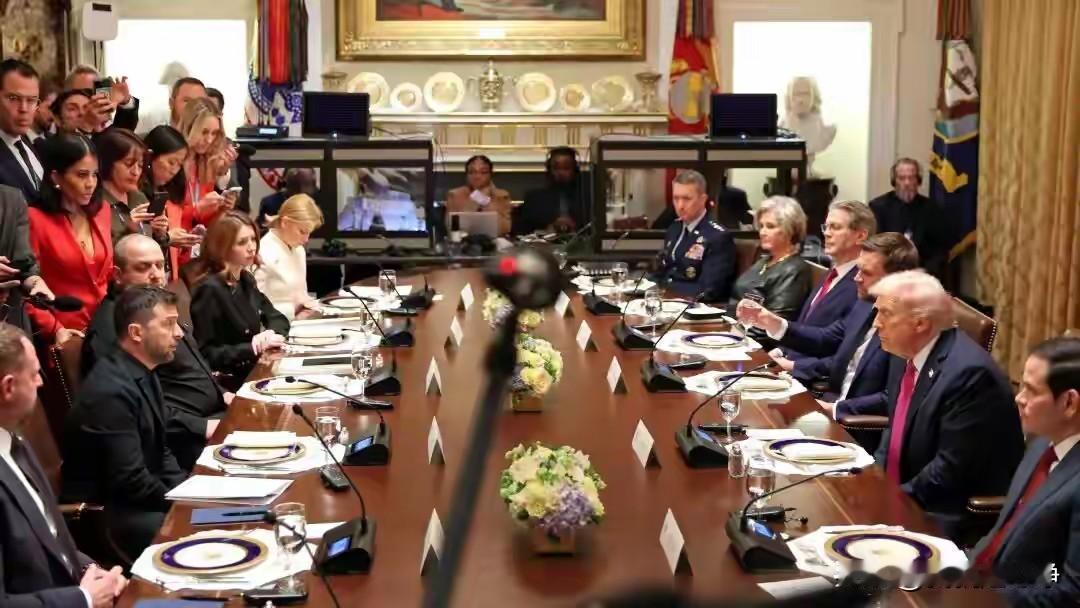 泽连斯基这一次访问美国总算是在白宫吃上饭了!现场流出的照片,泽连斯基和特朗普在一
