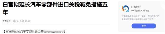 美国白宫宣布了 10月17日,外媒:白宫拟延长汽车进口零部件关税减免措施