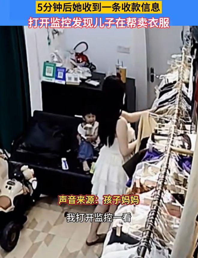 浙江宁波,一开服装店的女子,因有事要出去一会,便叫自己3岁的儿子独自看店一会。不料女子刚出门5分钟,就收到一条收款信息,结果打开店内监控才发现,她的儿子竟在这短短的五分钟时间里,帮忙卖了一件衣服! 10月17日中午,浙江宁波一家服装店里,3岁的小男孩踮着脚尖站在衣架旁,手里捏着一件碎花连衣裙,仰着头问面前的女顾客:“阿姨,你觉得这件好看吗?” 他的小脸上满是认真,说话的语气有模有样,完全不像个临时看店的孩子。   这一幕被店里的监控完整拍了下来。   原来男孩的妈妈是这家店的老板,当天临时有急事要出门,看儿子正蹲在角落玩积木,就随口跟他说“帮妈妈看会儿店,妈妈很快回来”。 她想着也就离开几分钟,应该不会有什么事,可刚走出店门没多远,手机就弹出了收款提示。   妈妈心里犯起嘀咕,自己都不在店里,怎么会突然有生意?   她赶紧打开手机里的监控画面,眼前的场景让她又惊又喜。儿子已经站到了店中央,正陪着一位女顾客选衣服。   来的是店里的老顾客,大概是看着孩子可爱,没有转身离开,反而耐心地配合着试穿。   监控里,男孩学着妈妈平时的样子,从衣架上取下不同款式的衣服递过去,还会主动拉着顾客的手走到试衣间门口。   顾客试穿完出来问他好不好看,他不管三七二十一,都用力点头说“好看”,小奶音里满是真诚,把顾客逗得直笑。   最后结账时,他还知道指着收银台旁的收款码,示意顾客扫码付款,全程没出一点差错,把一件衣服卖了出去。 下午的时候这个顾客还又过来了,让孩子帮忙推荐,一共买了11件衣服。   这段监控视频被妈妈发到网上后,很快就引发了热议。   不少网友都被这个“小掌柜”圈粉,有人说“这孩子也太懂事了,小小年纪就知道帮妈妈分担”,还有人调侃“这就是商家基因吧,天生就会做生意”。   大家都羡慕妈妈有个这么省心的儿子,夸男孩沉着大方,不怕生的性格太难得了。   不过也有网友提出了担心,觉得让3岁的孩子独自留在店里太不安全,万一遇到调皮的顾客或者突发情况,孩子根本没法应对。   这种说法也得到了不少人的认同,大家觉得虽然事情的结果很暖心,但安全问题还是不能忽视。   男孩能有这样的表现,不是偶然,他从小就跟着妈妈在店里长大,每天看着妈妈接待顾客、推荐衣服、办理结账,这些场景早就刻在了他的脑子里。   他不是在刻意模仿,而是把平时看到的东西自然地表现了出来,就连问“好不好看”的语气,都和妈妈一模一样。 那位老   对男孩来说,这5分钟的看店经历可能只是一次好玩的游戏,但这份经历里藏着他对妈妈的心疼,藏着他悄悄观察世界的认真。   妈妈说,自己看了半天店都没开张,没想到儿子几分钟就卖了11件,看着监控里儿子小小的身影,心里又暖又骄傲。   适当让孩子参与一些力所能及的事,比如帮着递个东西、说句简单的问候,是给了他们成长的机会。   就像这个3岁的男孩,在这次意外的“营业”中,不仅展现了自己的模仿力和沟通力,更收获了满满的成就感。   多年后回想起来,这段当“小掌柜”的经历,一定会成为他童年里最特别的回忆之一。
