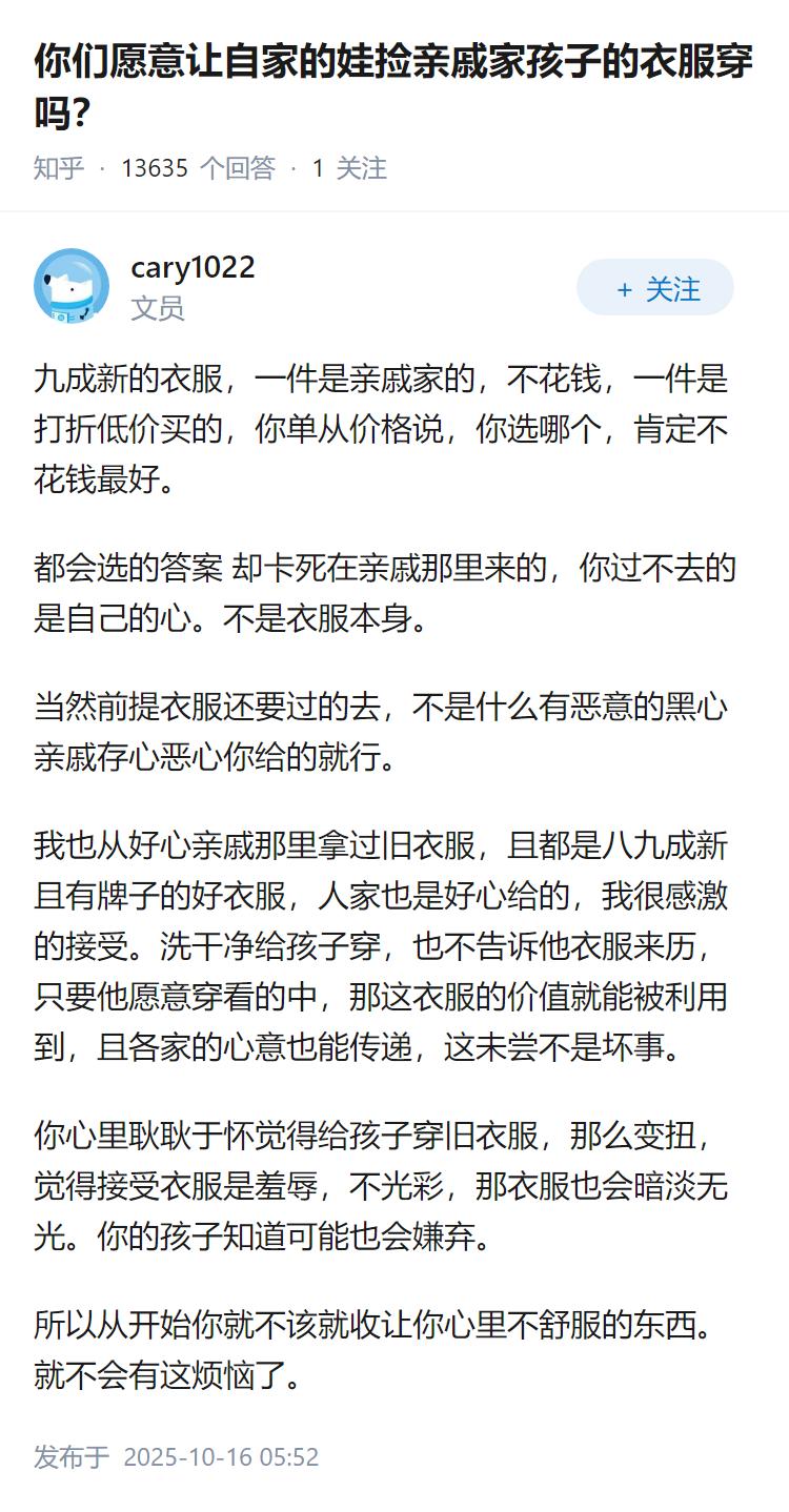 你们愿意让自家的娃捡亲戚家孩子的衣服穿吗?