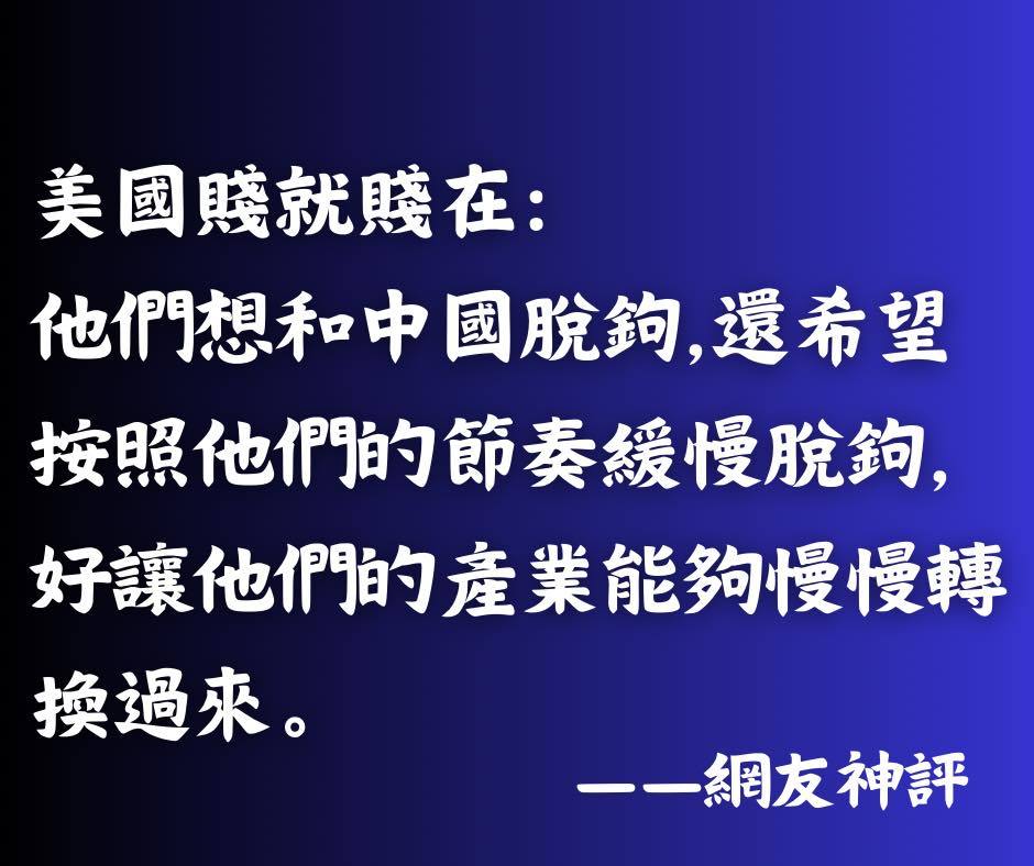 美国怎么说呢?在白宫做对中国工作的人都不会中文了,也不了解中国的国情和文化。一群拍马溜须的弄臣,是无法跟中国对垒的。美国现在是什么状况呢?做最乐观的打算,对自己的实力一无所知,对中国的实力一无所知,赢学上脑。而中国恰恰相反,而且中国已经不耐烦了。