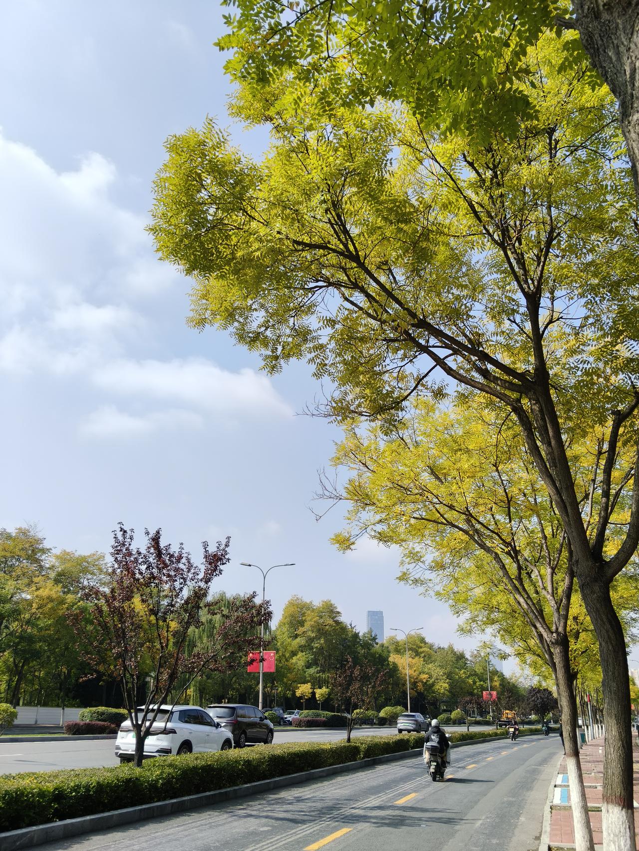 从国庆节长假期间,兰州每天不是阴天就是下雨,今天是10月18号,兰州的天气终于放晴了。 到了秋天,兰州马路两旁的树叶都已经由绿变黄。