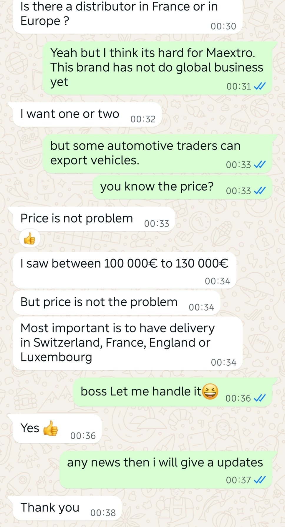 我问他,知道尊界这品牌吗?知道这车的价格吗?