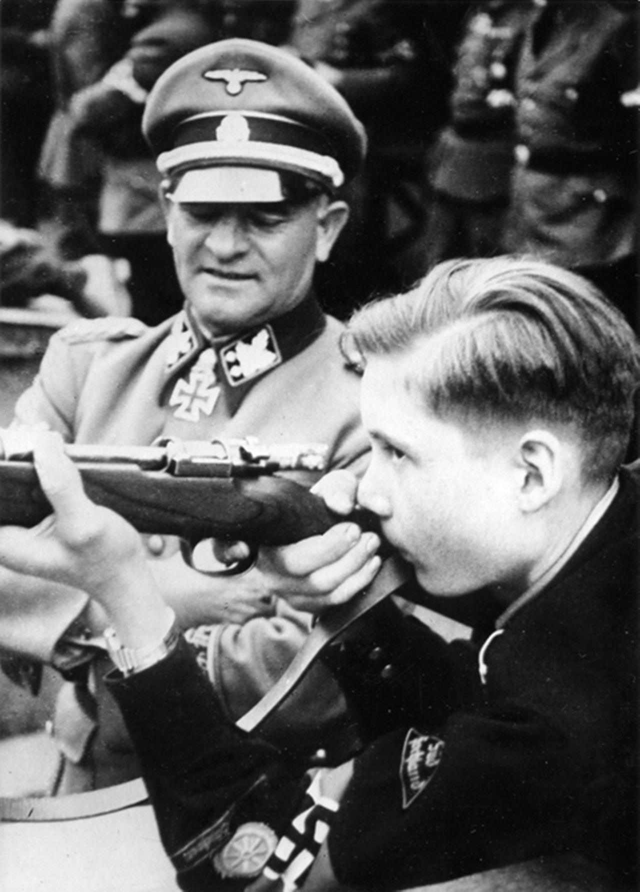 [呲牙] “正派但愚蠢”——1943年,党卫队领袖兼党卫军上将约瑟夫·“泽普”·迪特里希(时任党卫军第1装甲军军长),出席“希特勒青年团”组织的一场体育竞赛活动。 约瑟夫·“泽普”·迪特里希(Josef "Sepp" Dietrich, 1892-1966),是希特勒的早期亲信和心腹之一。他最初领导希特勒的贴身警卫队(“警卫旗队”),后以此为基础组建并指挥了党卫军最著名的王牌部队之一的党卫军第1“阿道夫·希特勒警卫旗队”装甲师。 [呲牙] 一些第三帝国高级将领评价他:“迪特里希虽然正派但很愚蠢”,还说——“迪特里希会是个不错的军士长;要是作为士官,他会做得更好;当士兵的话绝对堪称一流”~ 不过,也有一些将领认为他有“良好的直觉”,而且迪特里希对部下很好,很受士兵们的拥戴。 注:“希特勒青年团”(Hitler-Jugend)是第三帝国唯一的官方青年组织,所有适龄德国青少年都被要求加入。其核心任务是对德国青年进行全面的纳-粹主义思想灌输和军事化训练,为纳-粹战争机器培养后备力量。