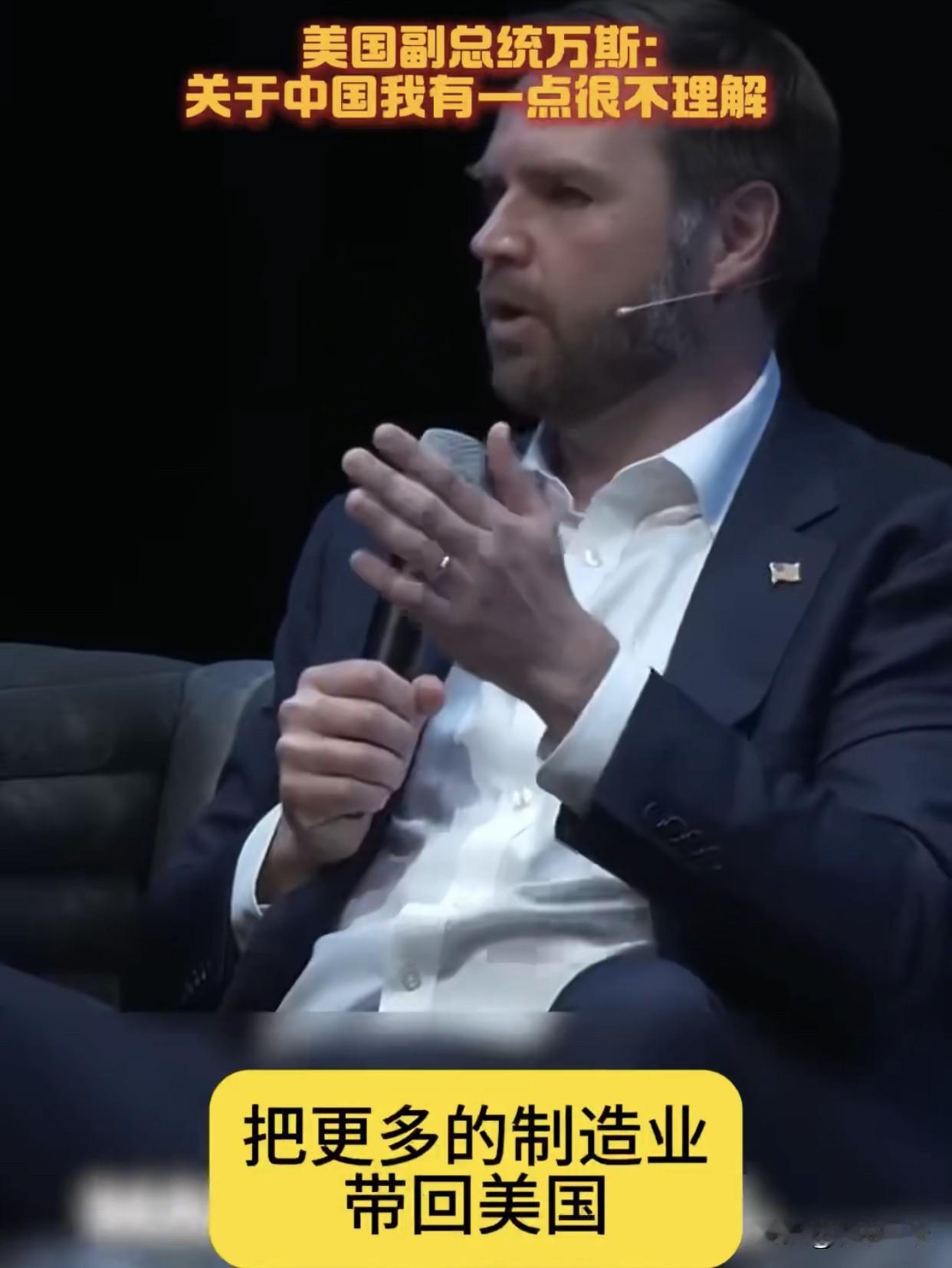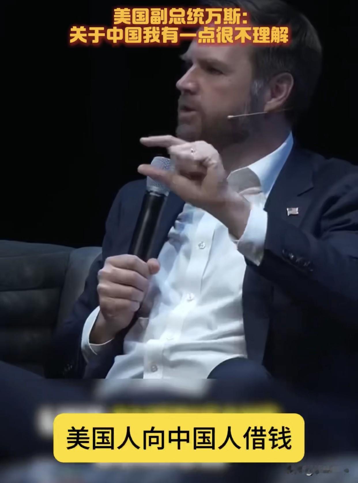 原来这就是美国副总统万斯对中美关系的认知。这就理解为什么美国开始走下坡路了。 他对着镜头一脸不解地发问,“美国是发达国家,中国是发展中国家,为啥我们要向中国借钱,再买中国商品?”还拿一战前的英美类比,说当年是英国的钱流向美国,现在的情况“太反常”。 先不说他早前用“乡巴佬”这种粗鄙词汇形容中国人,被外交部直接批“无知又无礼”,单说这次的“困惑”,如果这是万斯真实的困惑,我感觉他确实挺low的,根本就是不懂经济。 不是中国要借钱,是美国拿着美元霸权“强赊”。万斯只提美国向中国借钱,却绝口不提这钱是怎么来的。为啥敢这么“花钱如流水”?因为有美元霸权这个“全球提款机”。美国印钞发国债,用一张纸换走别国的商品和资源,再靠贸易逆差让美元流回自己口袋。 制造业更不是中国“抢”的,是美国自己给“扔了”。万斯一边喊着“制造业回流”,一边假装忘了美国制造业是怎么空心化的。是你们自己把实体产业挤得没活路。 当年英国的钱流向美国是投到工厂、修铁路,能实实在在赚收益。现在美国的钱呢?要么进了华尔街的腰包,要么砸在了无休止的军费和福利上,36万亿债务里没多少真正用于产业升级。 说到底,万斯的“困惑”是很多美国精英的通病:霸权当久了,既想享受美元霸权的红利,又不想接受产业空心化的后果;既想让中国提供廉价商品,又不愿承认自己的发展模式出了问题。