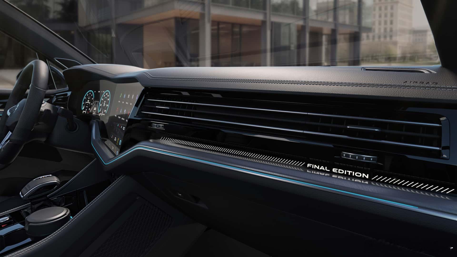 内饰以黑色为主,皮革挡杆、副驾仪表板、发光门槛饰条上都有“Final Edition”字样,氛围灯颜色也经过调整。这对于它75025欧(约62.35万元)的起售价来说,多少显得诚意不足[doge]