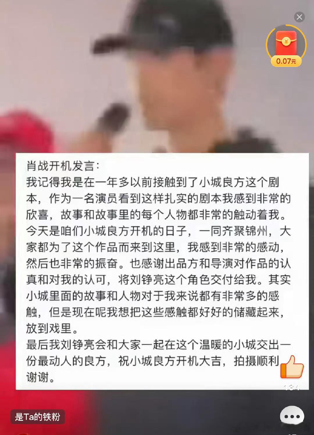 重庆人肖战勇闯东北肖战《小城良方》开机发言,稳定强大的内核和具有破碎感的外表,肖
