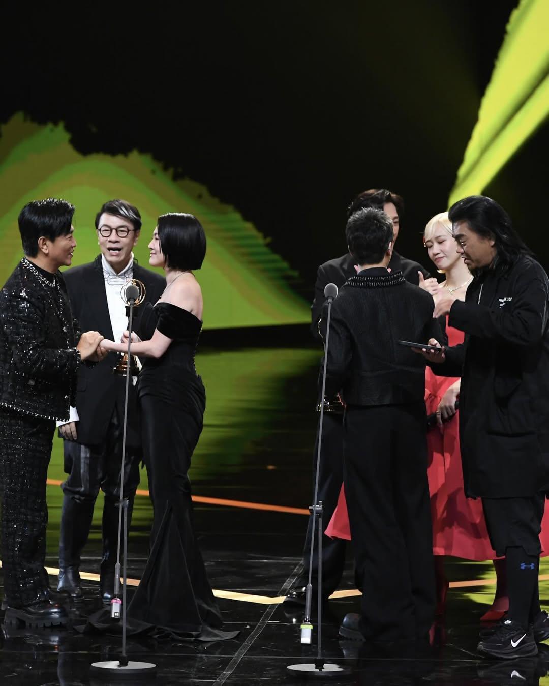 金鐘獎漏網花絮!當小S結束致詞,賓客逐漸散場的時候;《綜藝大熱門》的Lulu、陳漢典、吳宗憲跑上台,為小S、派翠克獻上真摯的祝福。台娱 小s 吴宗宪 蔡康永