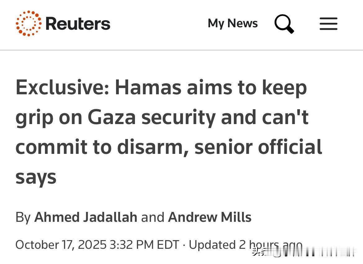 哈马斯的负责人刚刚发文说他永远不会放弃武装。因为只有武装才能维持对加沙的统治,你没了武装,怎么去统治加沙人民呢?这是明显公然拒绝特朗普对加沙的和平计划和中东和平协议的反抗。估计特朗普听说以后啊也比较恼火。这加沙的武装确实很猖狂,而且哈马斯的武装不解除,中东永远没有和平之日。