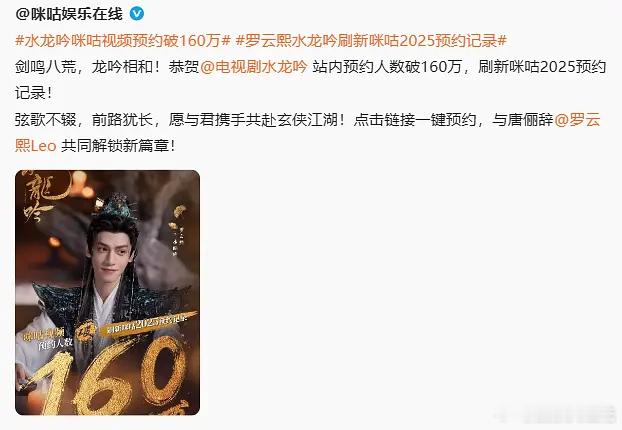 罗云熙水龙吟破了咪咕2025预约记录诶[good][good]这个粉丝人数牛的