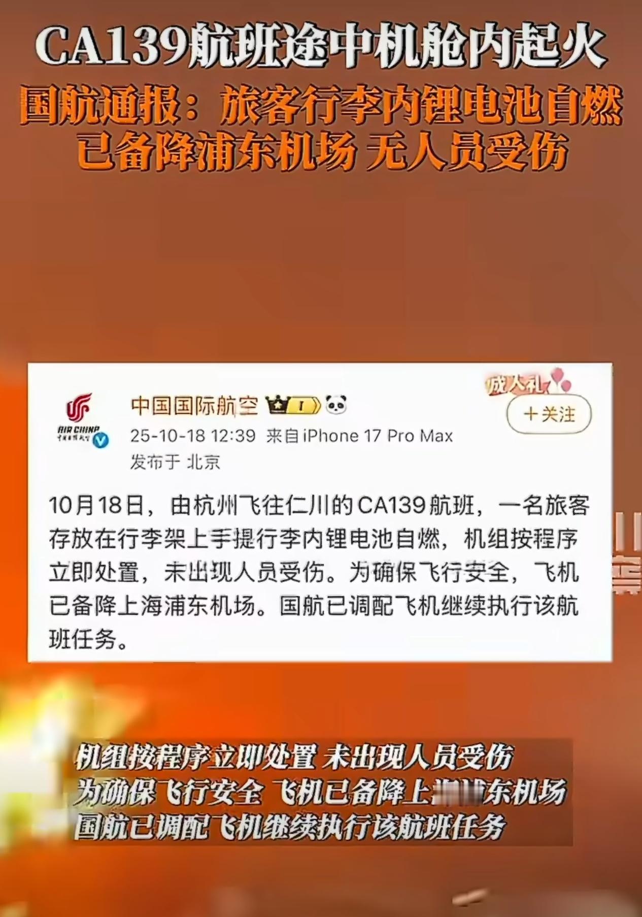 最近电池导致的问题情况着实不少,这还是在航班上面,更加危险。各位真的检查一下手头的电池设备吧,特别是需要出行之前,对自己对别人都好。