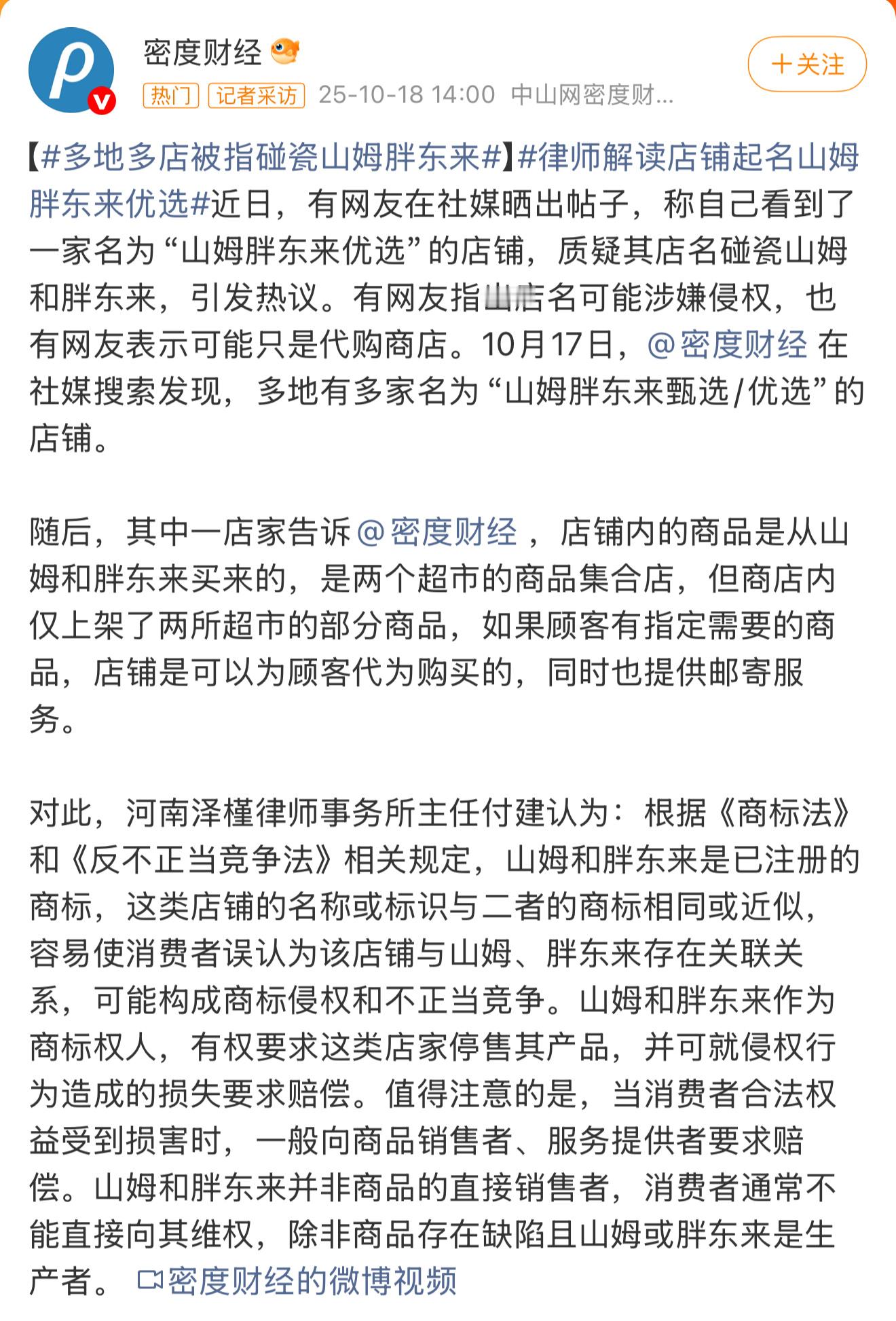 山姆胖东来优选 碰瓷。