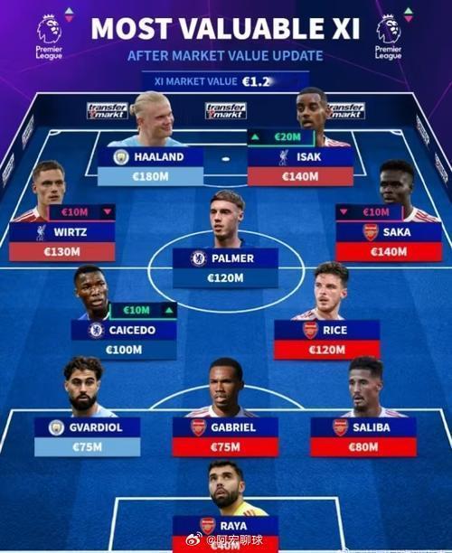 德转列身价更新后英超最贵阵:哈兰德领衔,总身价达12亿欧