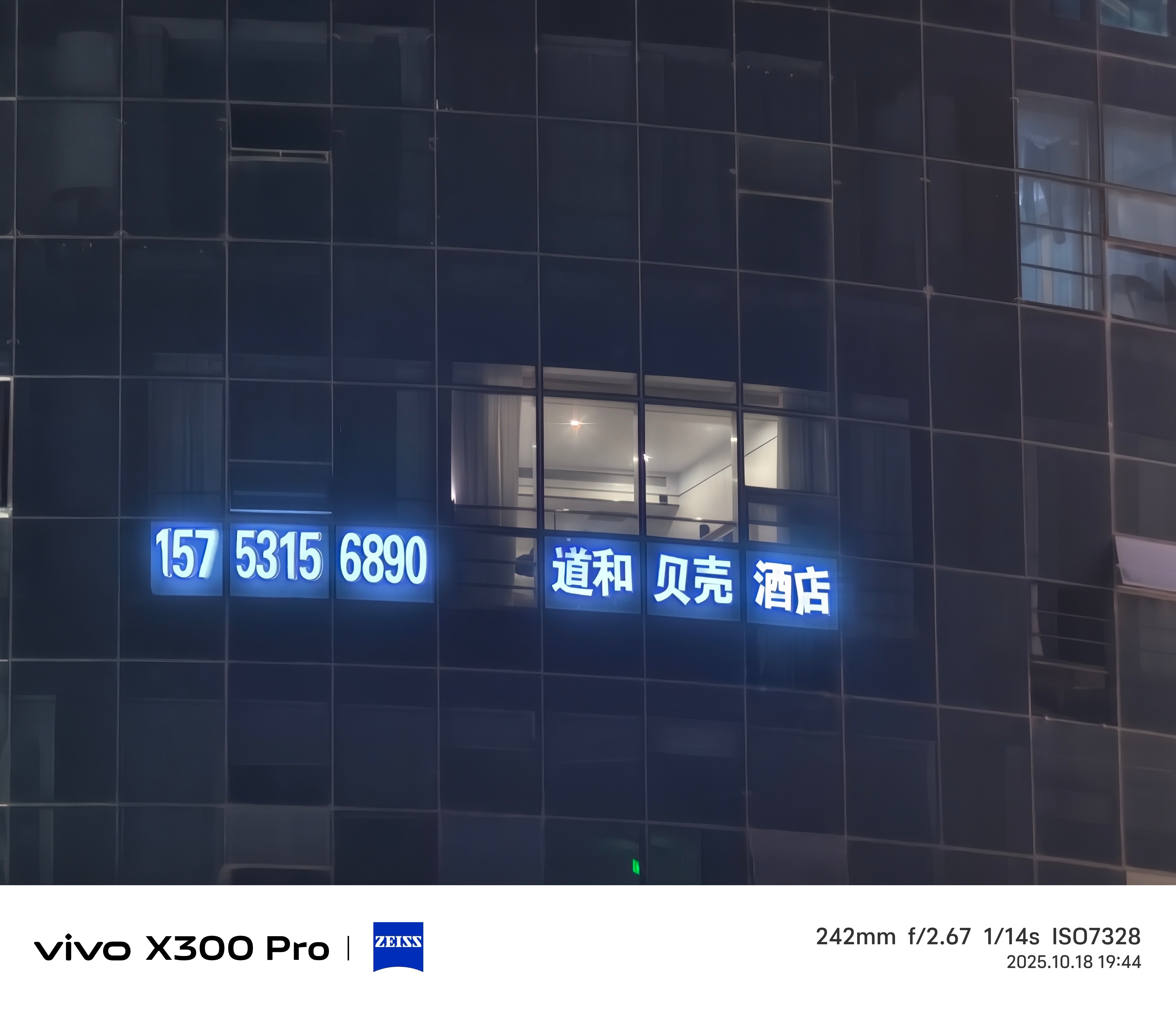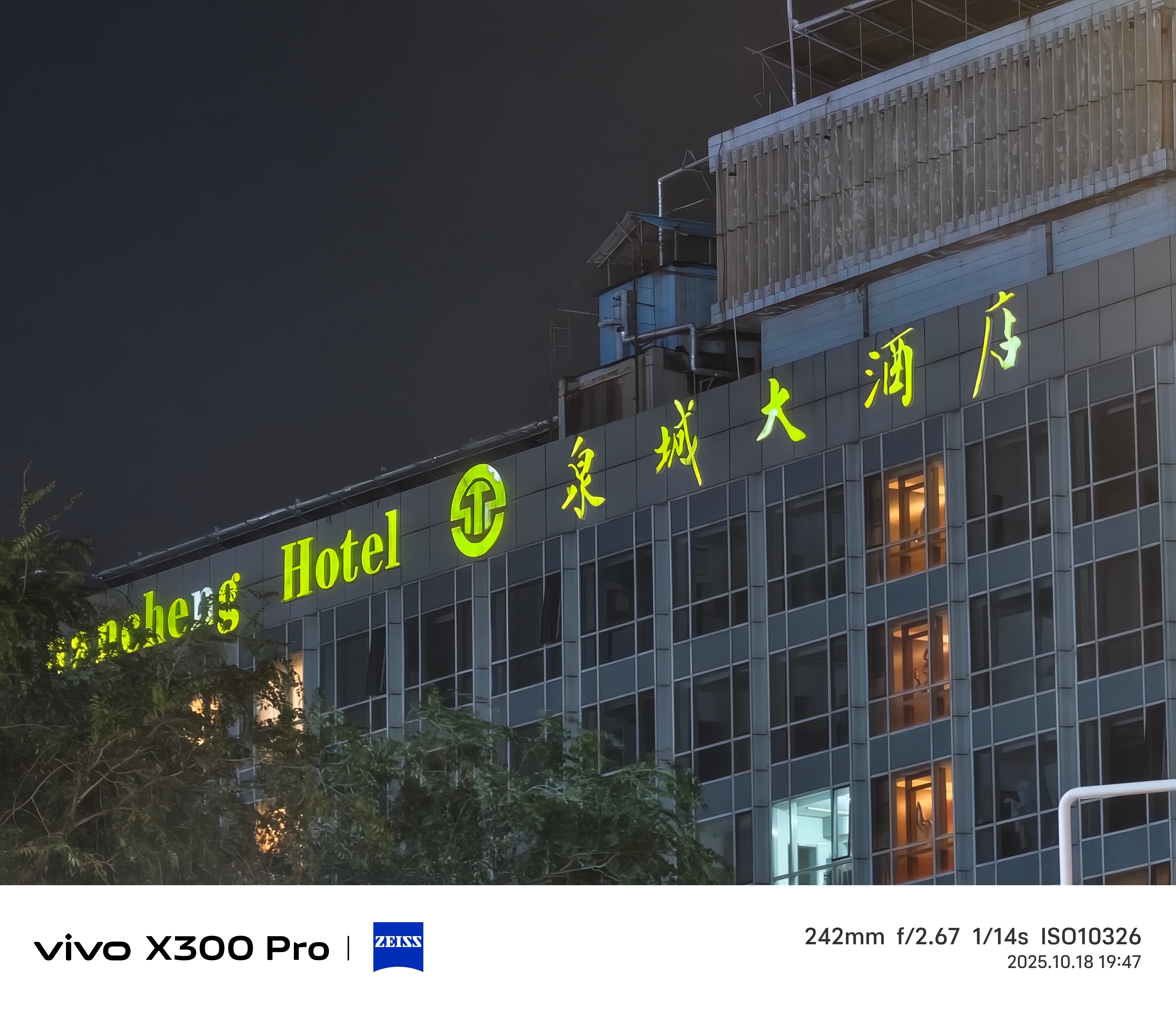 首先说明一下版本,目前vivo X300 Pro是市售后的最新版本,荣耀Magic8 Pro目前还不是正式零售的版本。选择的模式都是自然模式,为啥vivo X300 Pro不采用原生光影模式,因为原生光影模式无法激活夜景模式