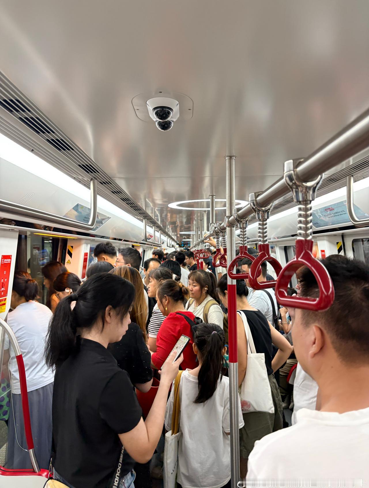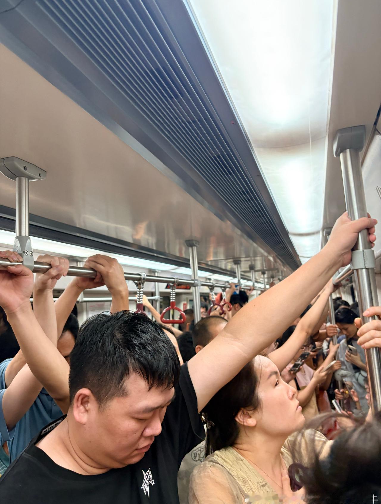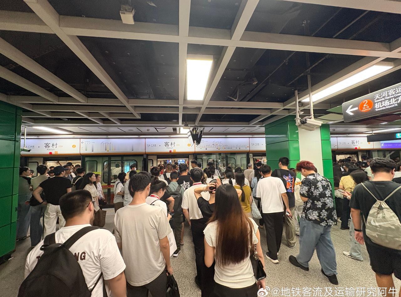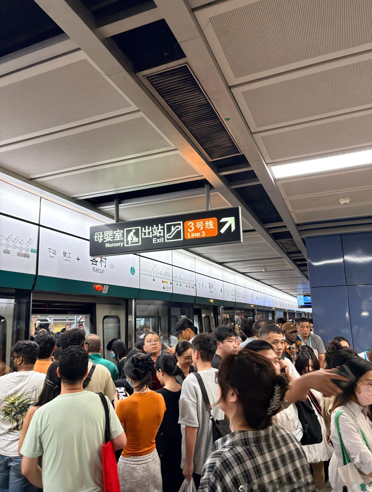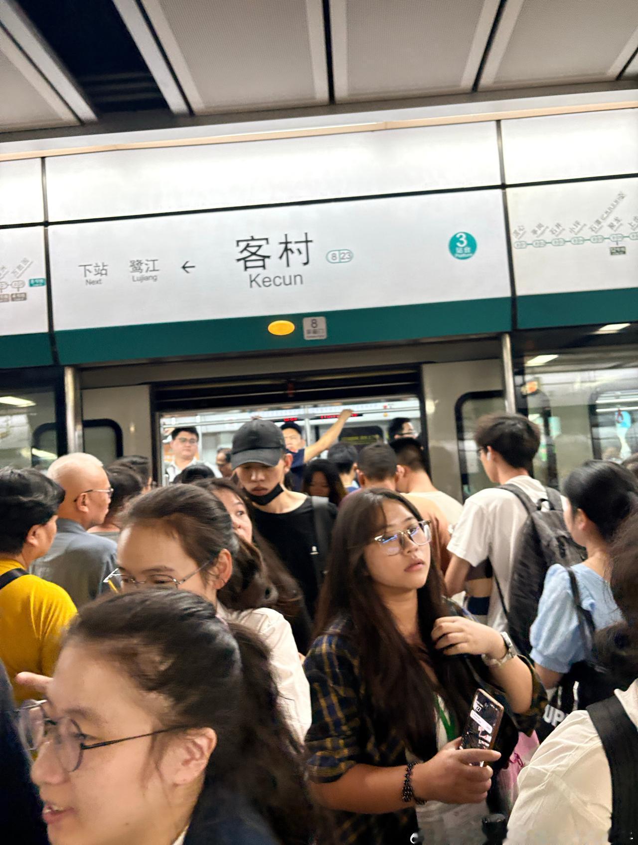 网友:2025年10月18日周六,广州天晴叠加广交会。 图一图二为18:20左右广州地铁3号线客村站台,图三为3号线客村北上客流。 图四为18:25左右客流实况图。 图五为3号线客村出站扶梯。 图六图七为18:40左右8号线客村站台。 图八图九为19:00左右11号线外环琶洲-员村客流。