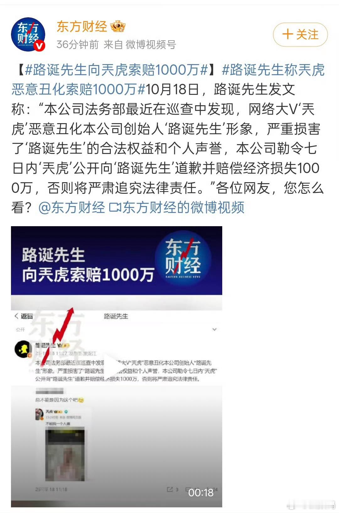 路诞先生称兲虎恶意丑化索赔1000万东方财经真的是没东西发了吗?还是卤蛋给他们家投钱了?这都能上热搜。[笑cry]