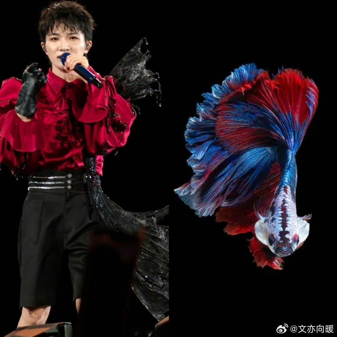 周深凤尾斗鱼造型周深那黑色小翅膀扮相,简直神还原凤尾斗鱼,优雅与灵动并存,让人