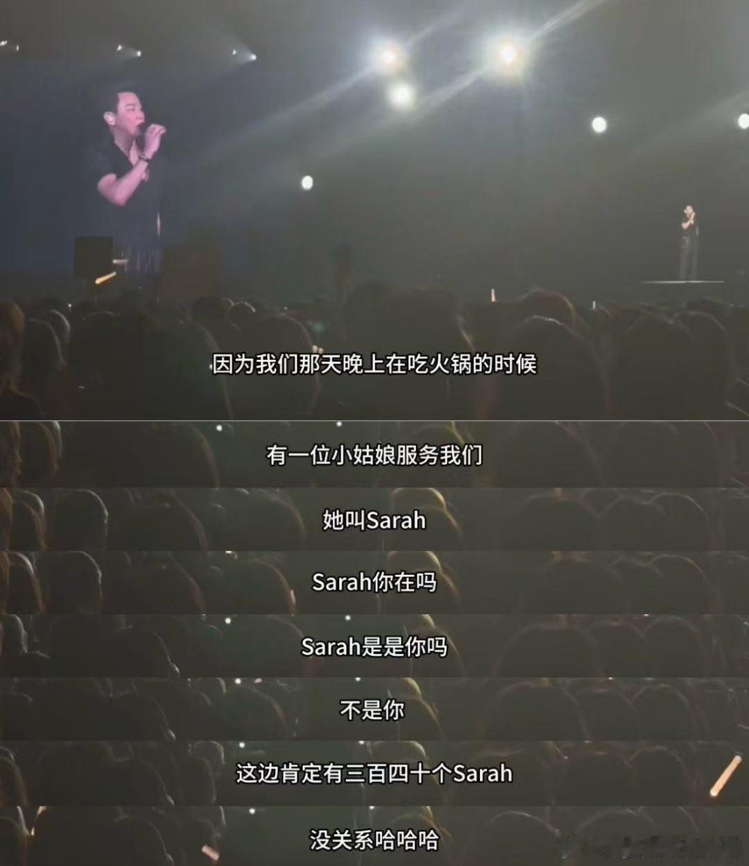 陶喆在舞台上找火锅店服务员 笑到肚子痛!陶喆演唱会不唱歌先“寻人”,找火锅服务员Sarah,结果几百人都改名,我直接留言:陶老师,能带我一起吃火锅嘛哈哈哈! ​​​