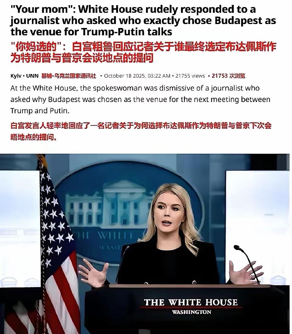 白宫这位28岁的美女发言人把记者会开成了“骂街会” 卡罗琳,这位颇受特朗普青睐的白宫新闻发言人,称得上是年轻貌美身材好,可说话风格却偏偏像极了特朗普,一句不合便开怼。 这不,被记者问及是谁将布达佩斯定为接下来特朗普与普京会晤的地点时,卡罗琳没有做任何解释,直接回怼了四个字:你妈定的。这一下都把现场记者给整懵逼了,按说记者问的这个问题也没什么出格的呀?作为新闻发言人怎么就直接开骂了呢? 真是有怎样的老板,就有怎么的下属。跟着特不靠谱的特朗普,也都是一群不靠谱的下属。大家觉得是这样吧?欢迎在评论区分享交流。
