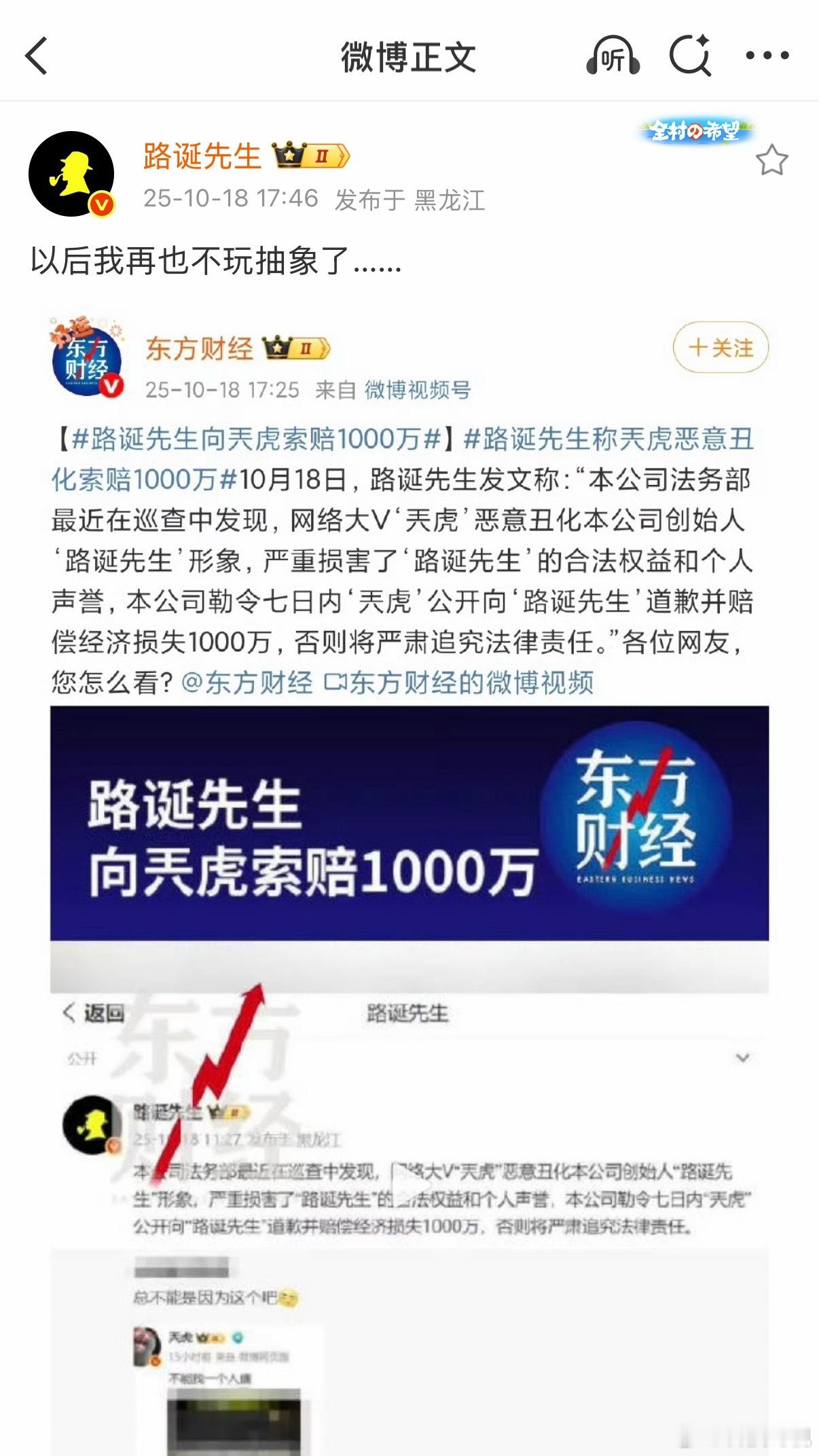 路诞先生向兲虎索赔1000万年度沙雕新闻,所以说某些财经媒体的水平是真低呢,朋友