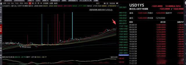 二、避险资产上涨由于担心金融风险,黄金猛涨!然后是2年美债利率跌破了新低。市场押注美联储降息的概率继续再度上升。如果未来再冒出点类似的幺蛾子,美联储可能就会加大降息的幅度了。正如我之前所说,美联储一旦开始降息,节奏很可能会加速。因为降息本身就会诱发“降息事件”。当下,原油也在向前低进发。反观国内,在股市表现萎靡时,债市的压力降低。并得到了一定的修复。但债市真正的压力在于央行还在不断减少掉期点补贴。今天USD/CNY1年掉期点创出了新高。而人民币中间价也创出了新高,达到了7.0949!美国现在的麻烦很多,在这个时候跟东大博弈,他们的胜算大大降低。