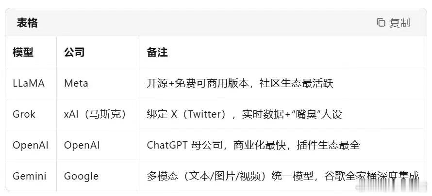 一句话总结:模型层“四国杀”——Meta 走开源、Google 走多模态、OpenAI 走付费、Grok 走流量。